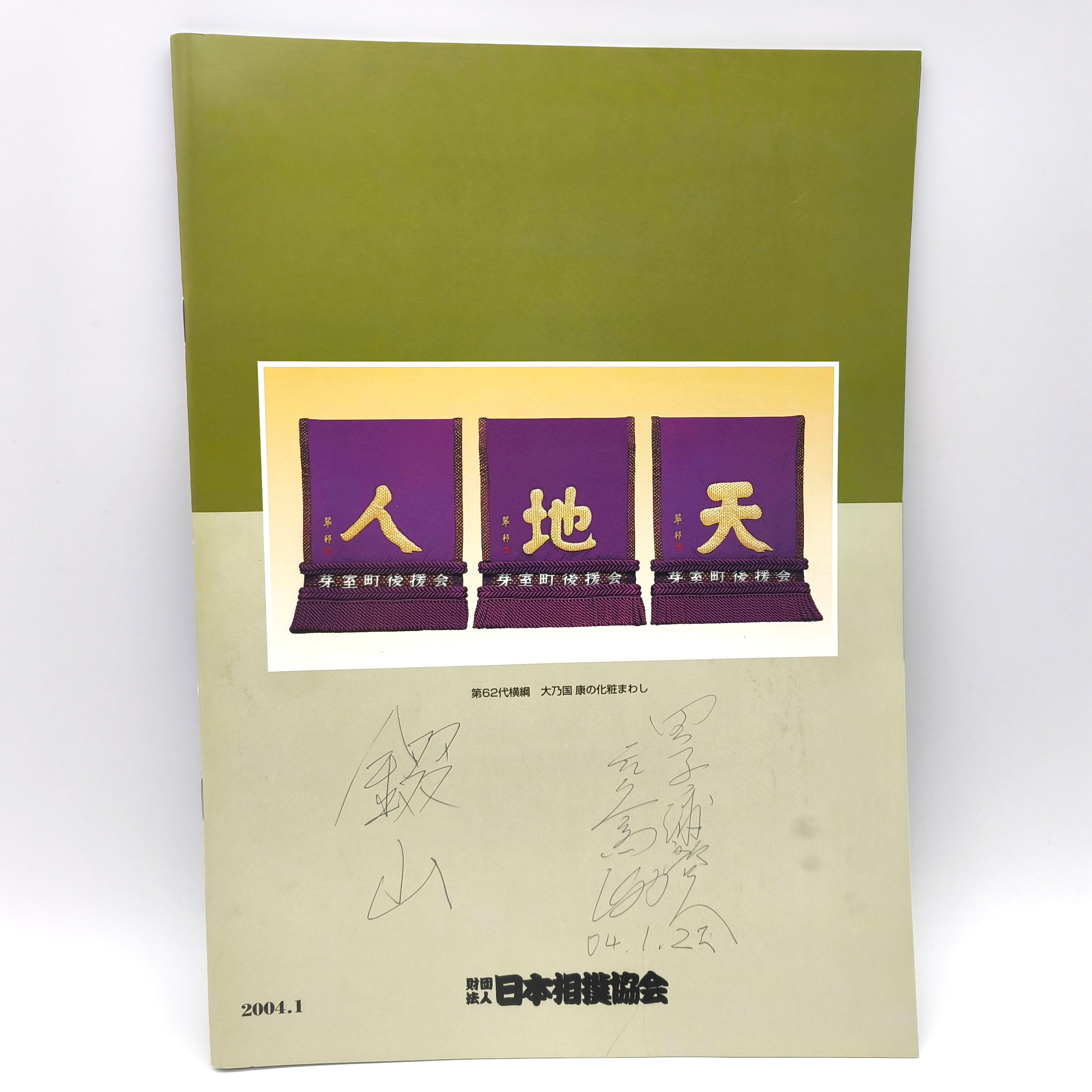 サイズ:A4(210×297㎜)、状態ランク:C 商品は画像に写っているものが全てです。裏表紙に錣山親方(元関脇寺尾)のものと思われるサインが記入されています。その他状態は画像をご確認ください。