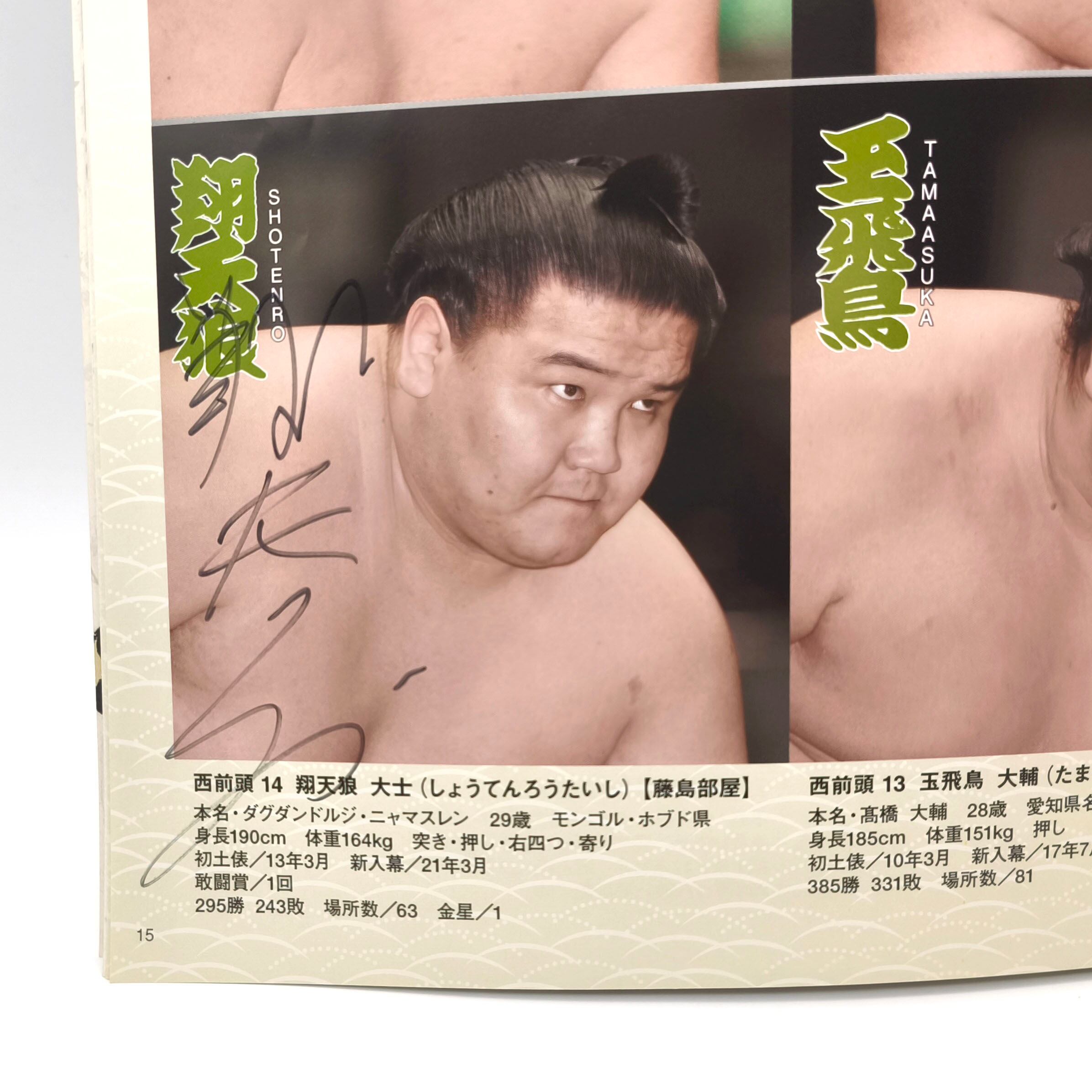 サイズ:A4(210×297㎜)、状態ランク:C 商品は画像に写っているものが全てです。翔天狼、黒海、隆の山の紹介ページに本人のものと思われるサインが記入されています。その他状態は画像をご確認ください。