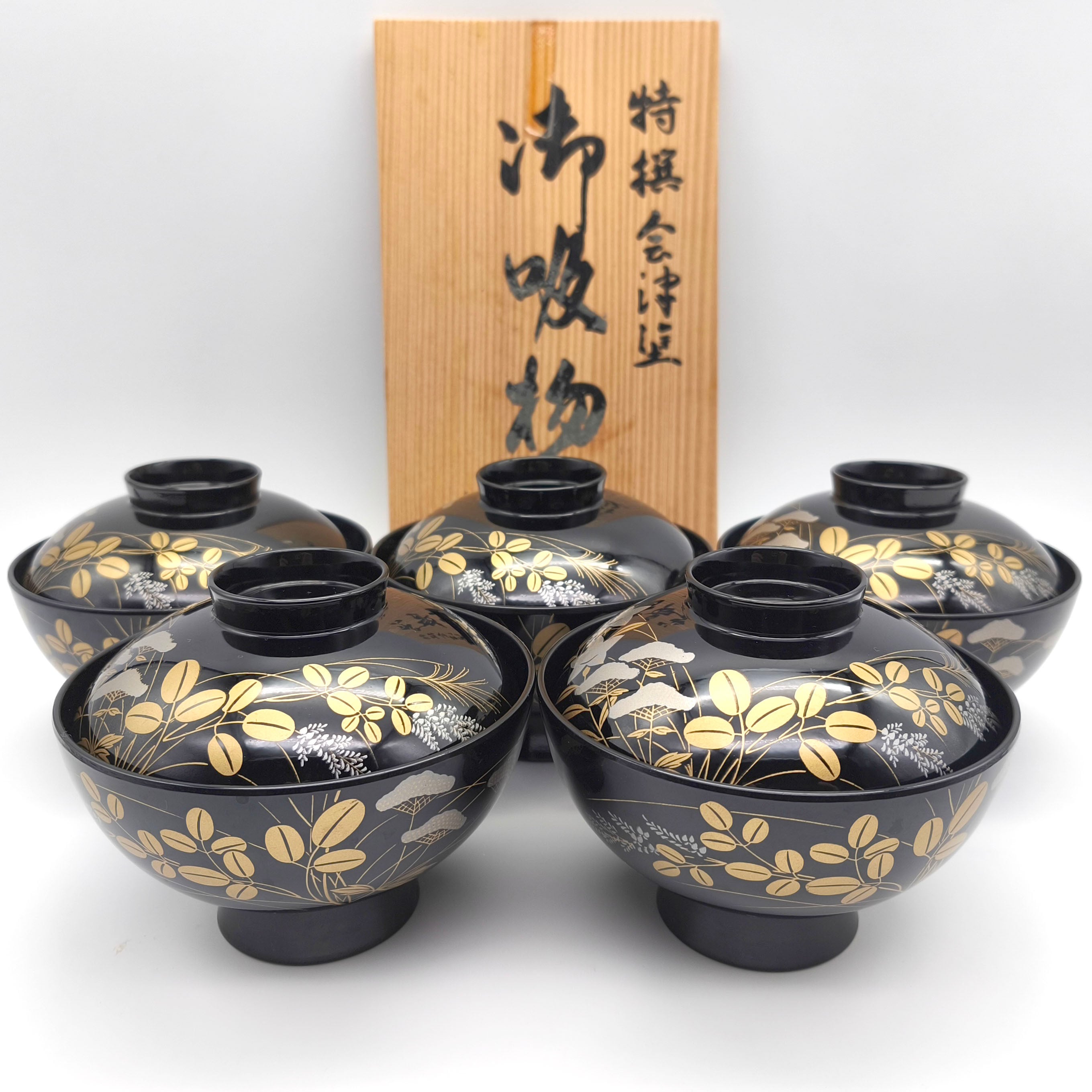 椀サイズ(直径×蓋込み高さ):約122×100㎜、5客揃、状態ランク:D 商品は画像に写っているものが全てです。使用による小キズやヨゴレが見受けられます。その他状態は画像をご確認ください。