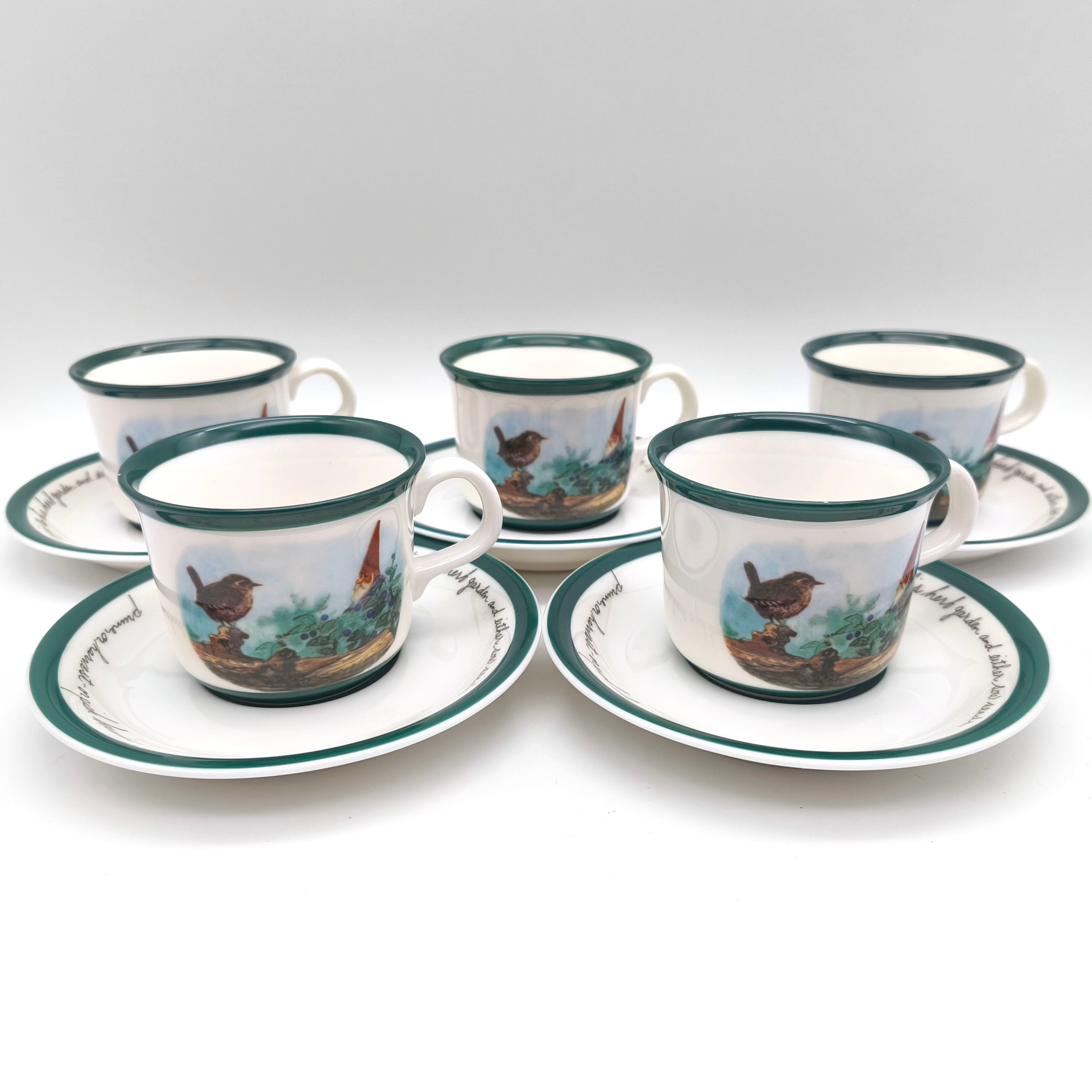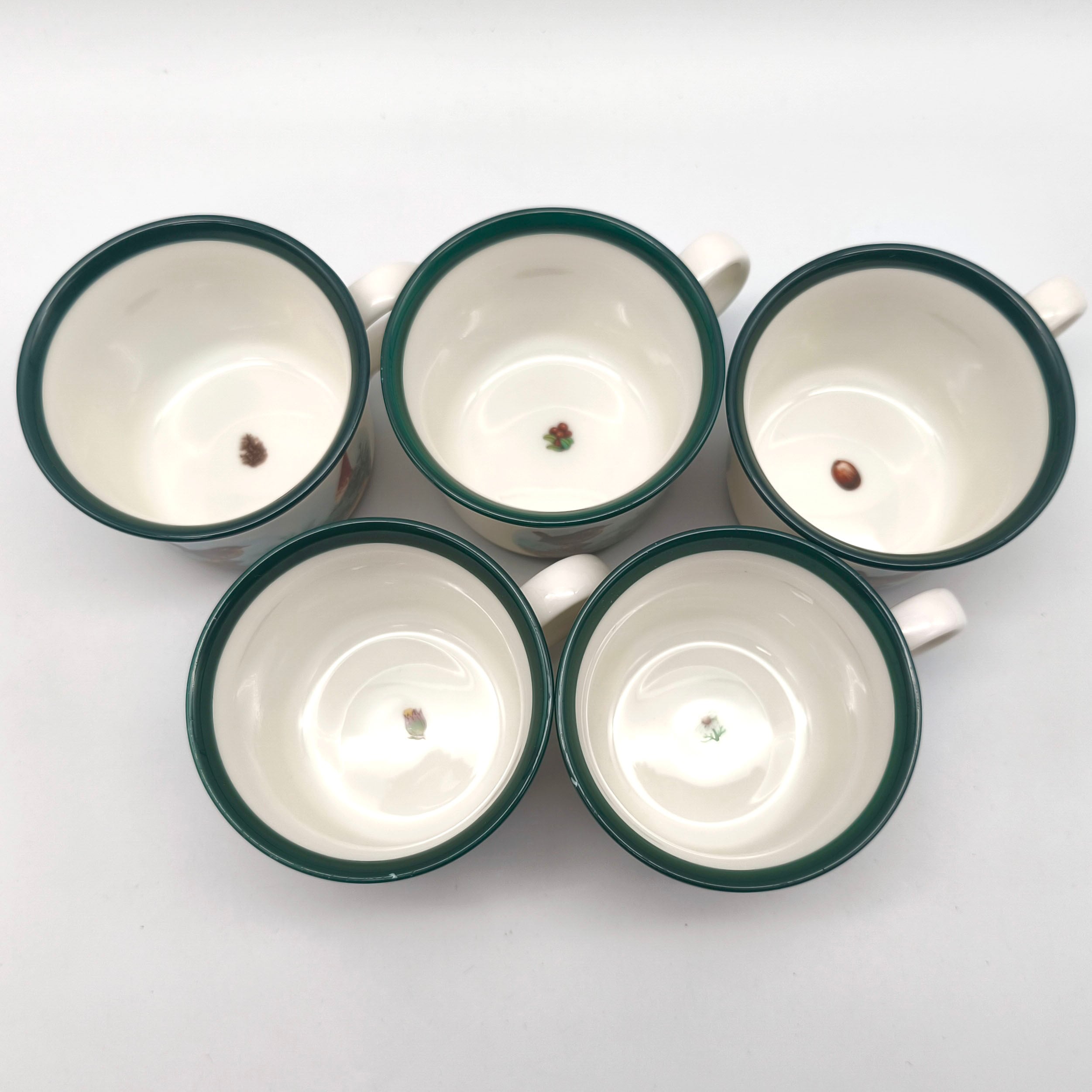 カップサイズ(胴直径×高さ):約75×60㎜、ソーサー径:約135㎜、5客セット、状態ランク:C 商品は画像に写っているものが全てです。一部のカップの縁部分に小さなカケが見受けられます。その他状態は画像をご確認ください。※表記されたブランド名が異なるため外箱はおそらく別物です。