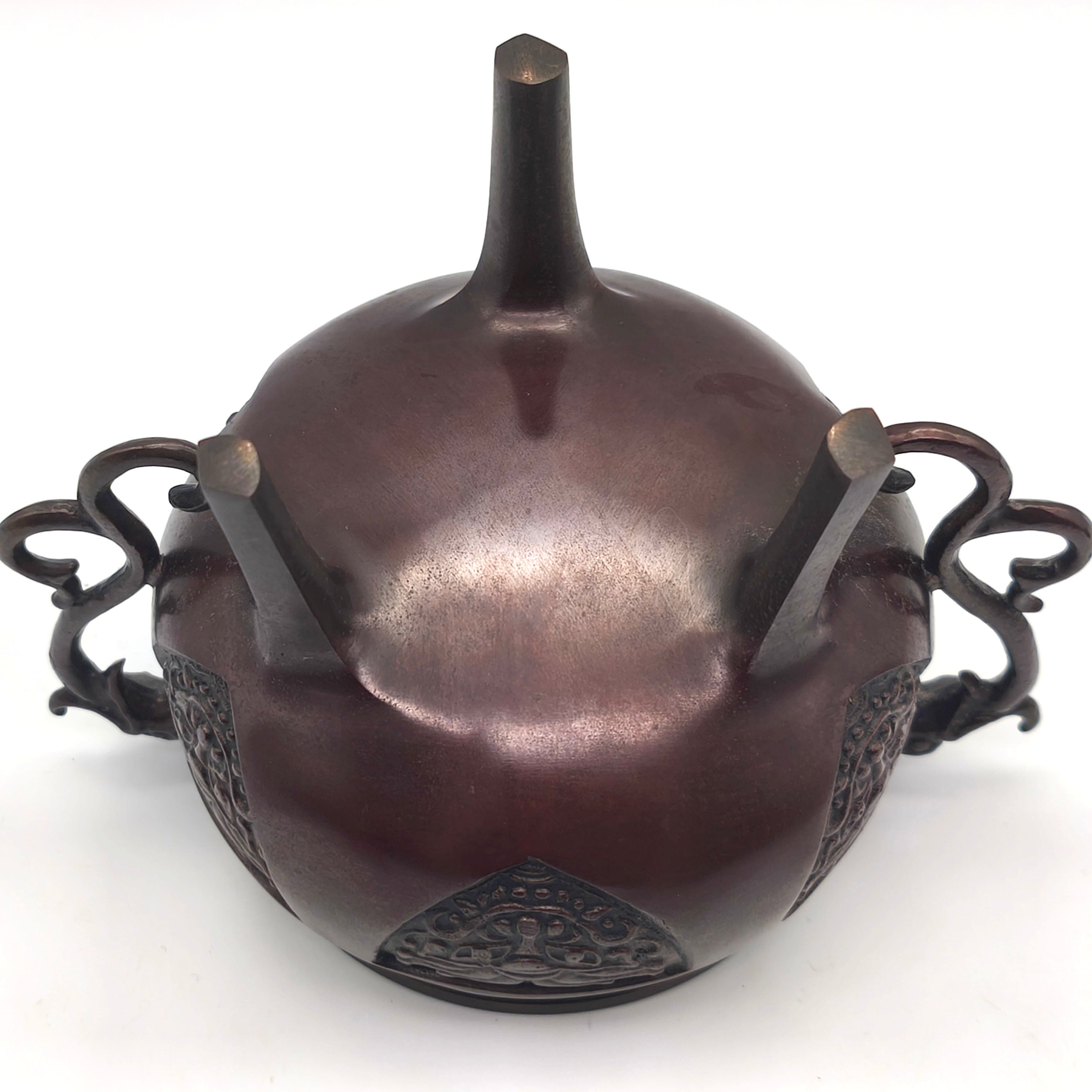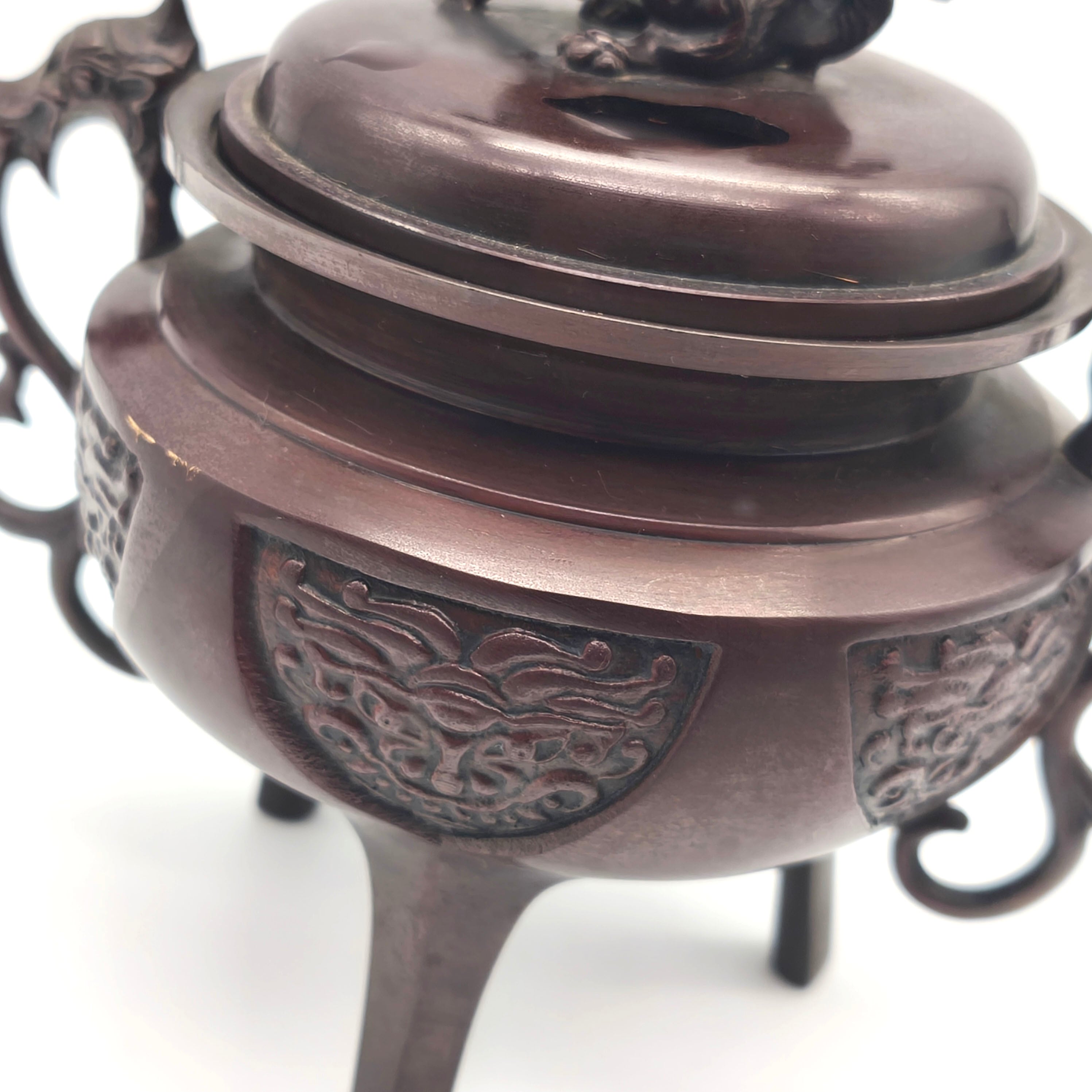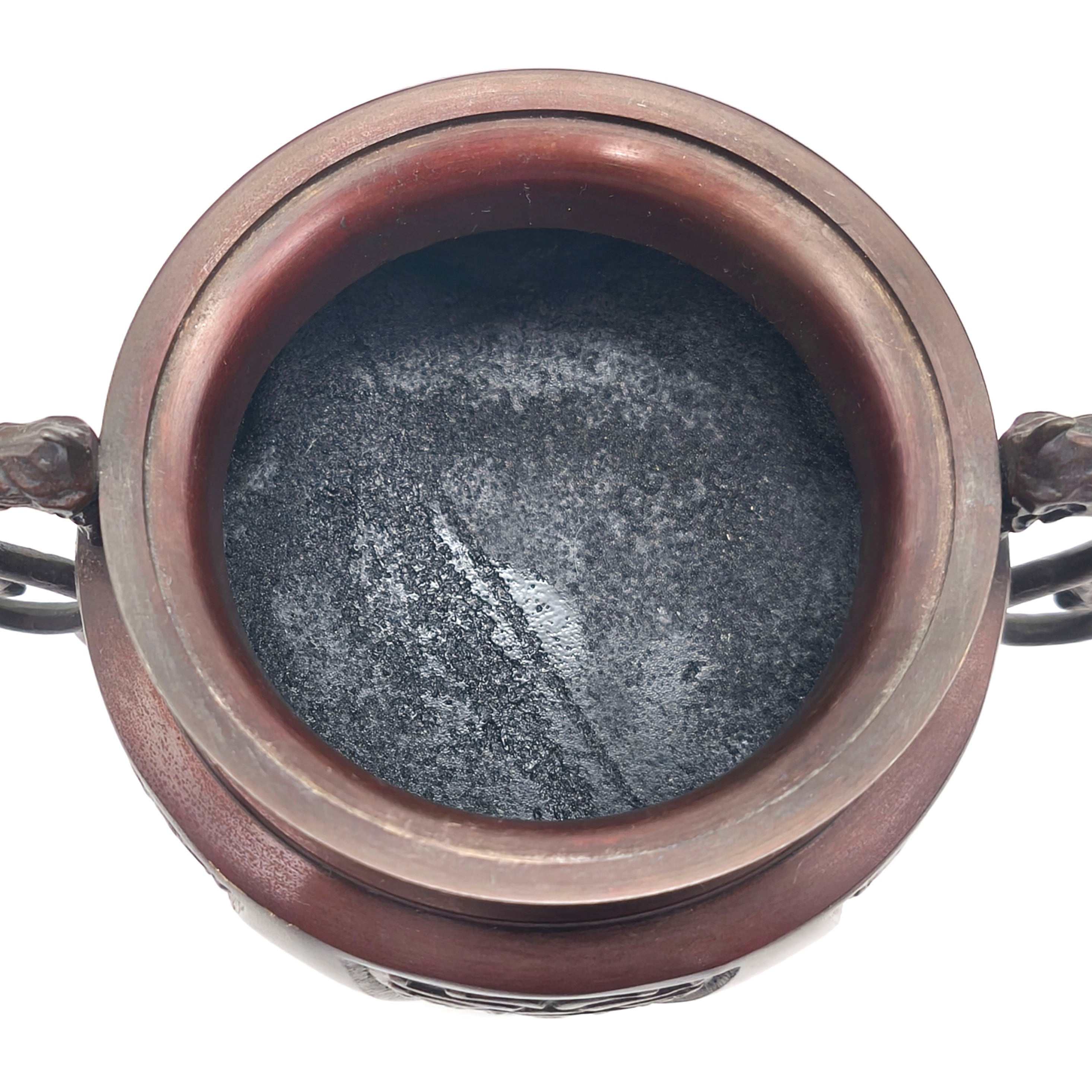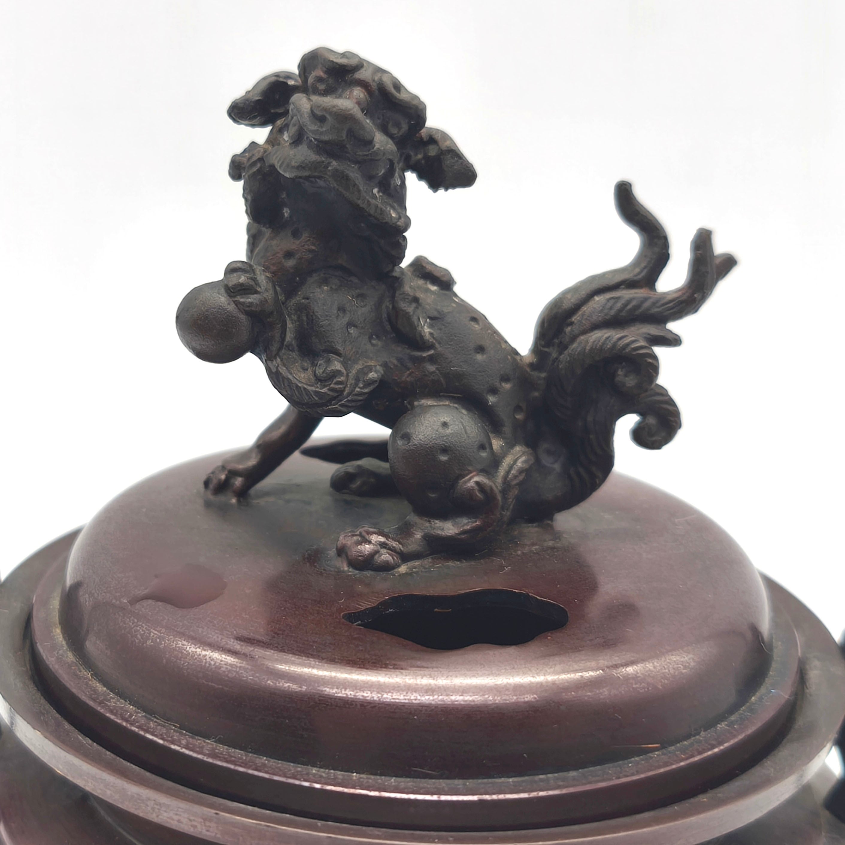 香炉サイズ(幅×奥行×高さ):約150×110×165㎜、外箱なし、状態ランク:C 共箱等が無いため詳細は不明ですが画像検索したところ高岡銅器の可能性が高いです。商品は画像に写っているものが全てです。使用による小キズやヨゴレが見受けられます。その他状態は画像をご確認ください。