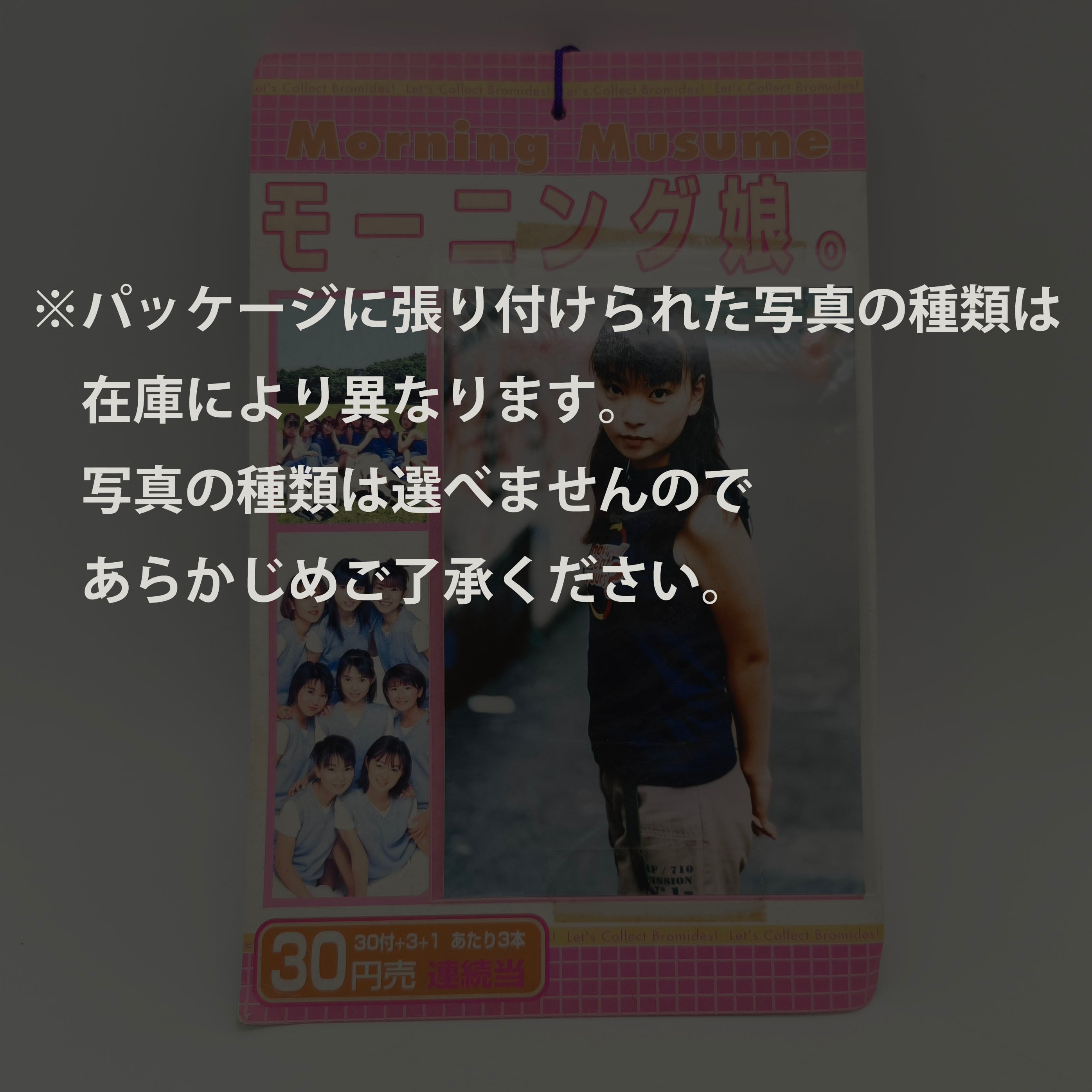 ブロマイドサイズ:約82×120㎜、袋34枚+表紙1枚、状態ランク:D 商品は画像に写っているものが全てです。パッケージと表紙ブロマイドには劣化が見受けられます。ブロマイド入り紙袋は全て未開封です。その他状態は画像をご確認ください。※在庫により表紙のブロマイドは異なります。詳しくは4枚目の画像をご確認ください。
