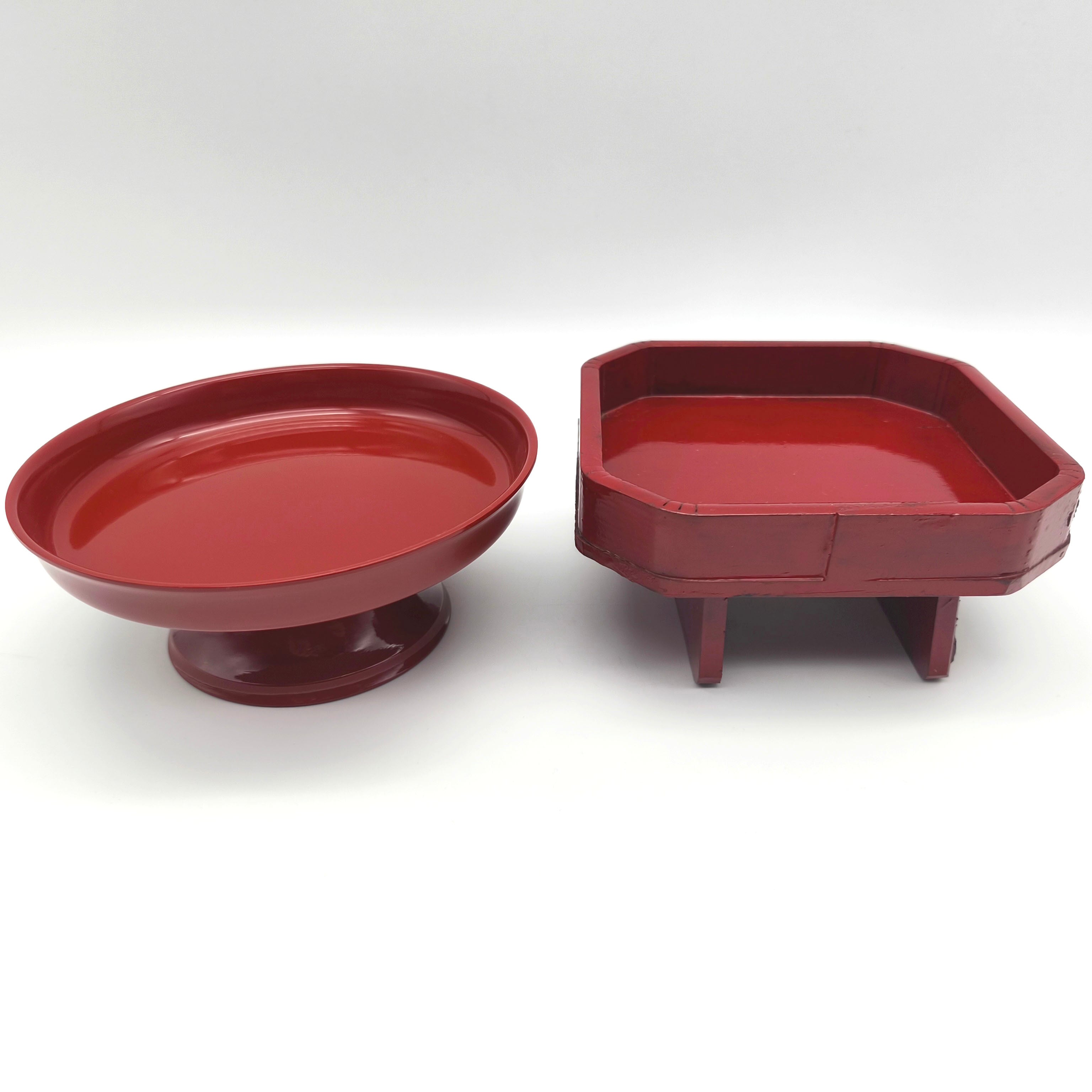 丸供物台(直径×高さ):約135×55㎜、角供物台(幅×奥行×高さ):約120×120×58㎜、外箱なし、状態ランク:D 商品は画像に写っているものが全てです。使用による小キズやヨゴレが見受けられます。その他状態は画像をご確認ください。