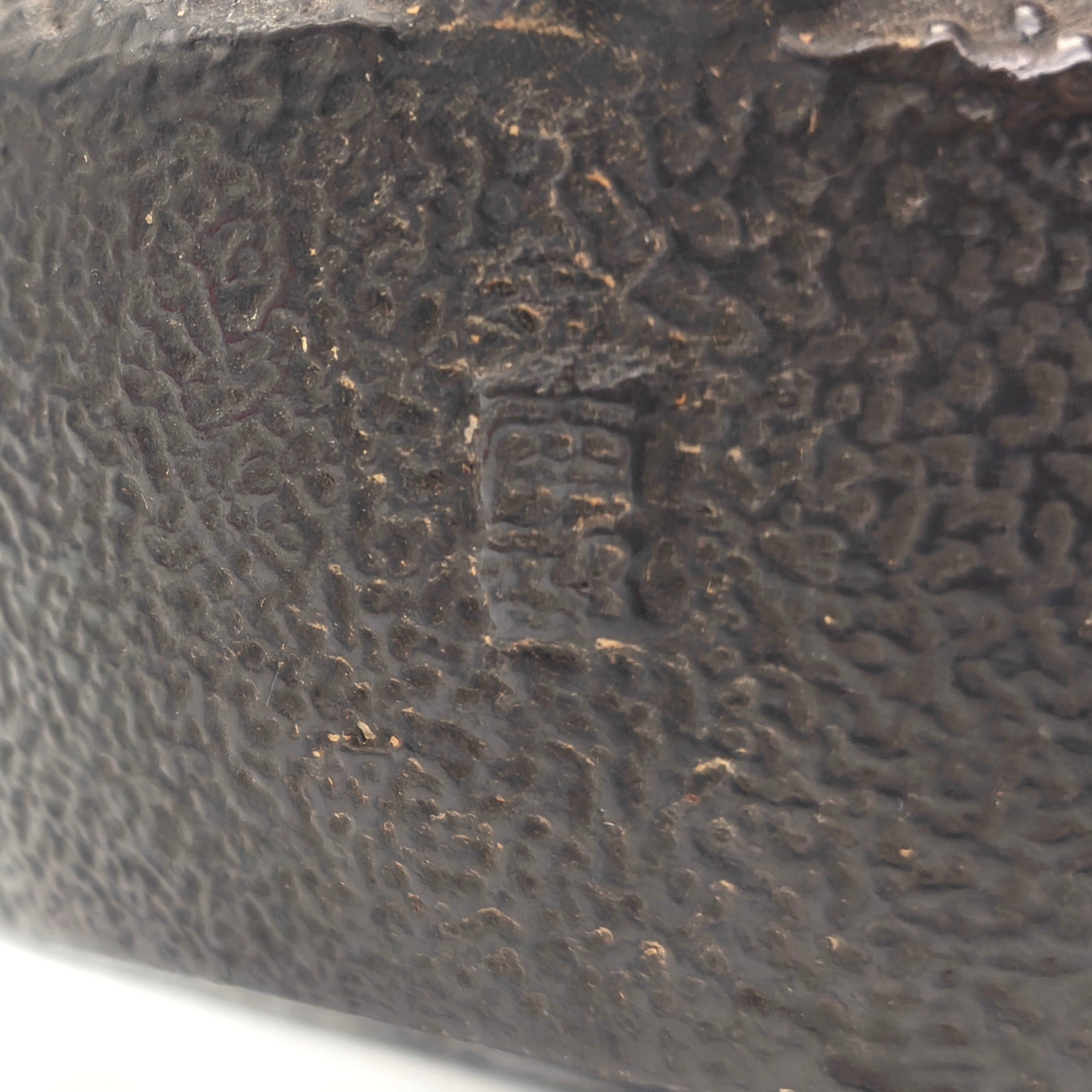 鉄器サイズ(幅×奥行×持手抜き高さ):約125×110×90㎜、外箱なし、状態ランク:D 商品は画像に写っているものが全てです。使用によるサビ汚れなどが見受けられます。その他状態は画像をご確認ください。