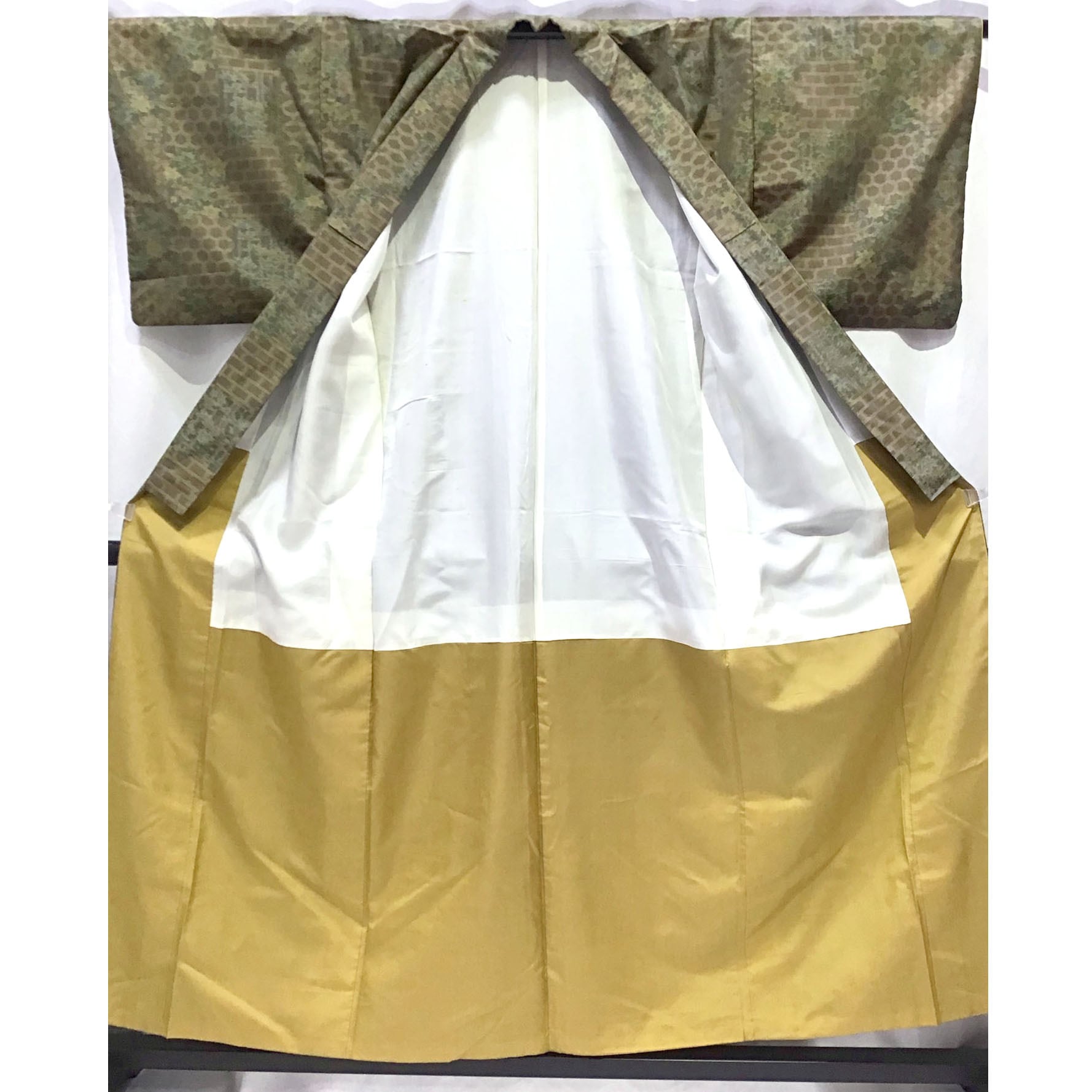 身丈:約153㎝、袖:約45㎝、裄:約63㎝、後幅:約30.5㎝、前幅:約27㎝、状態ランク:C 商品は画像に写っているものが全てです。胴裏に黄変が見受けられます。その他状態は画像をご確認ください。