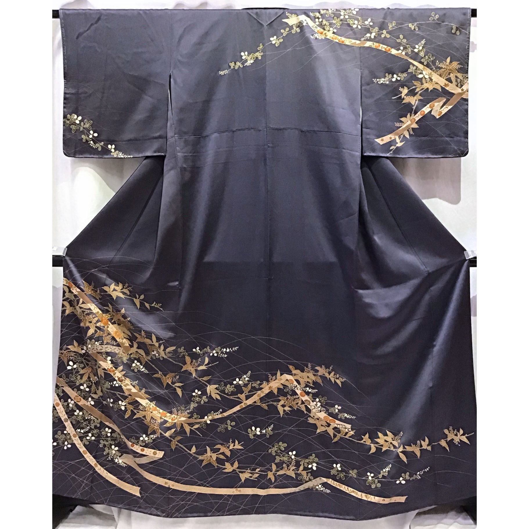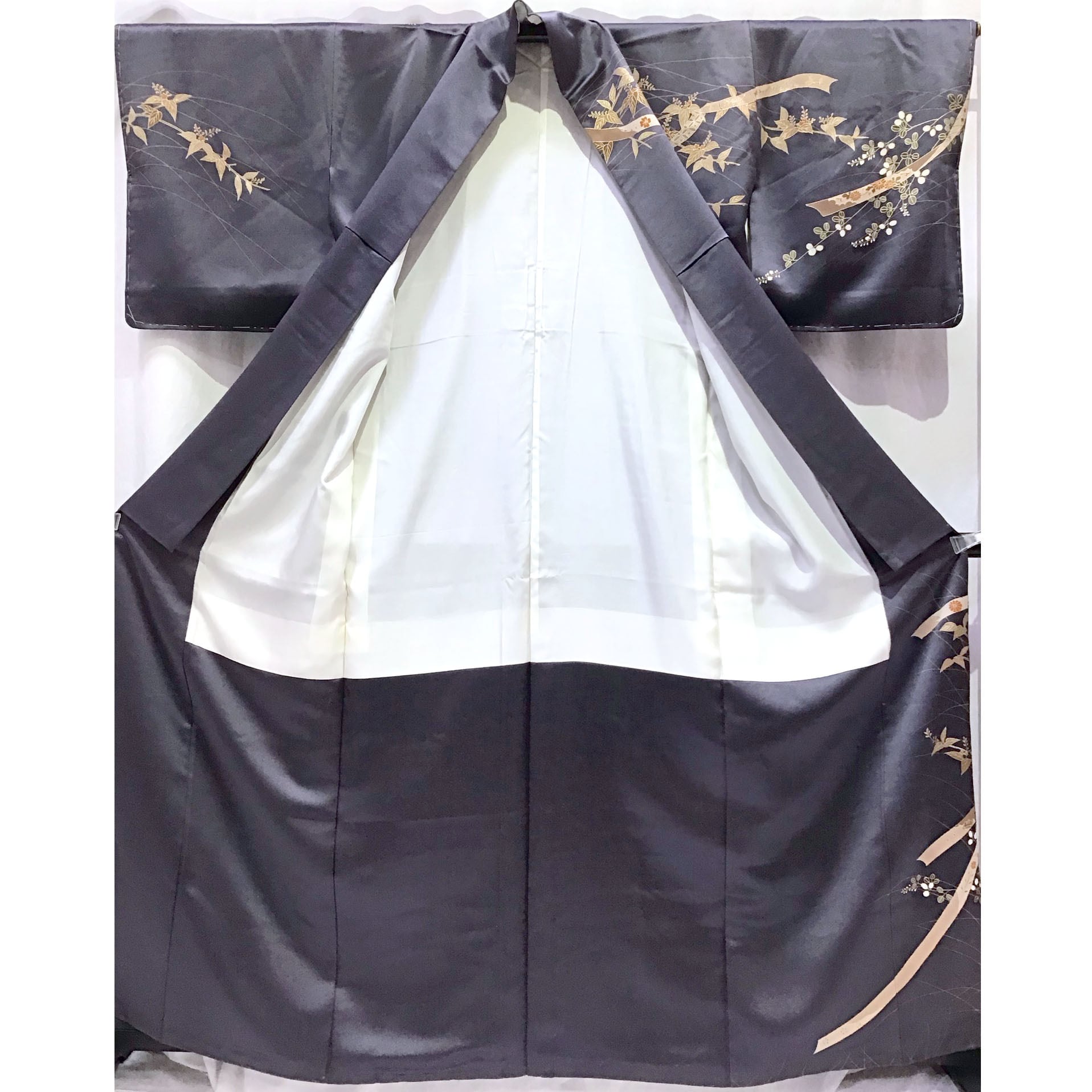 身丈:約160㎝、袖:約47㎝、裄:約63㎝、後幅:約30㎝、前幅:約25㎝、袖しつけ付、状態ランク:A 商品は画像に写っているものが全てです。目立つヨゴレなどはありません。その他状態は画像をご確認ください。