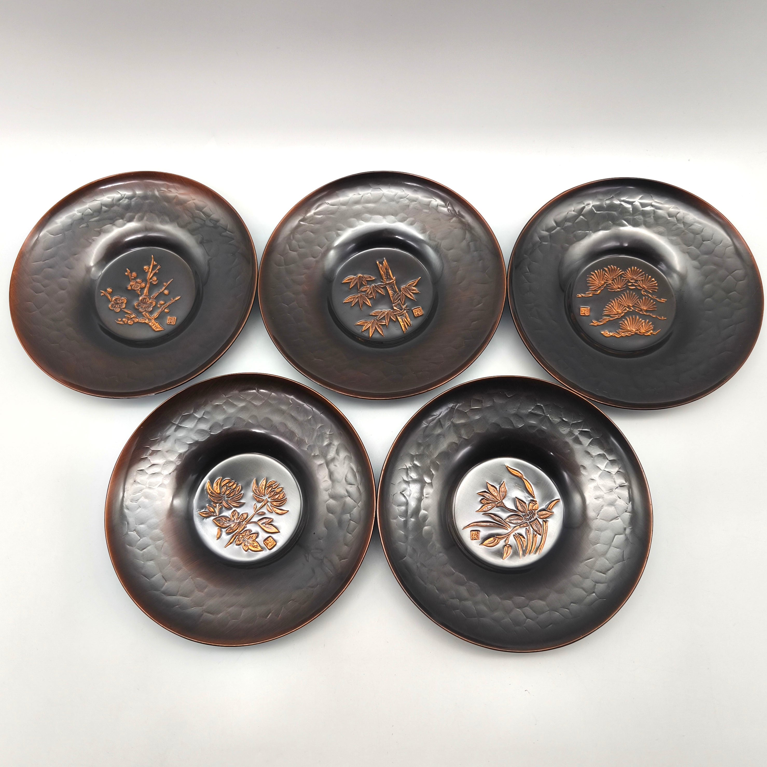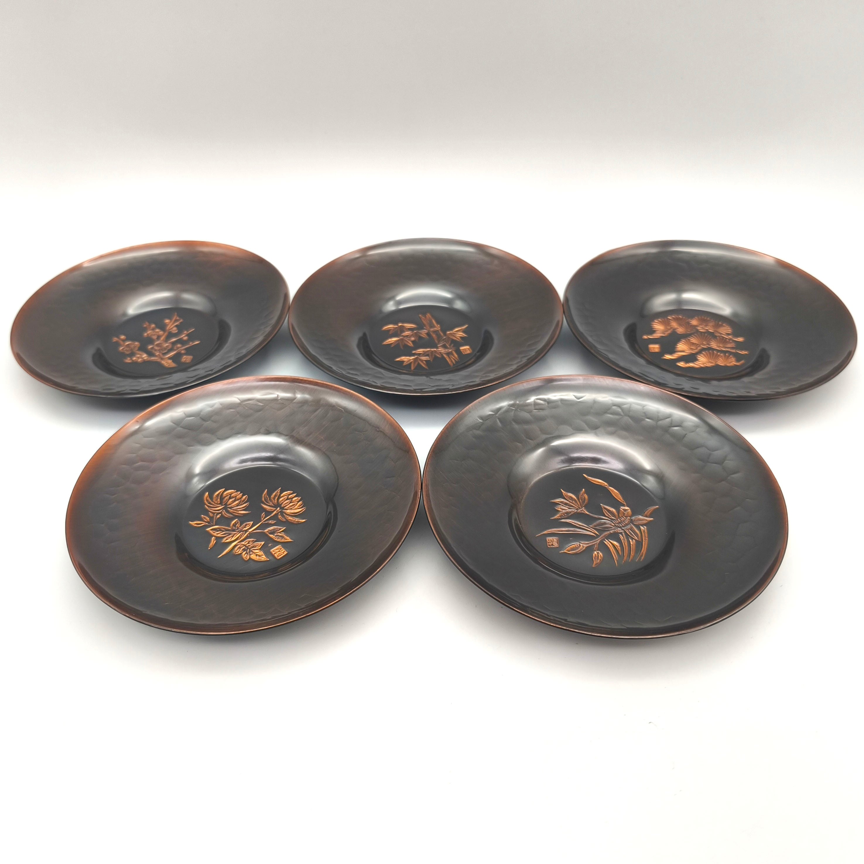 茶托サイズ(直径×高さ):約118×18㎜、5客揃、状態ランク:C 商品は画像に写っているものが全てです。本来は茶器とのセット商品のようですが、こちらは茶托のみの販売となります。その他状態は画像をご確認ください。