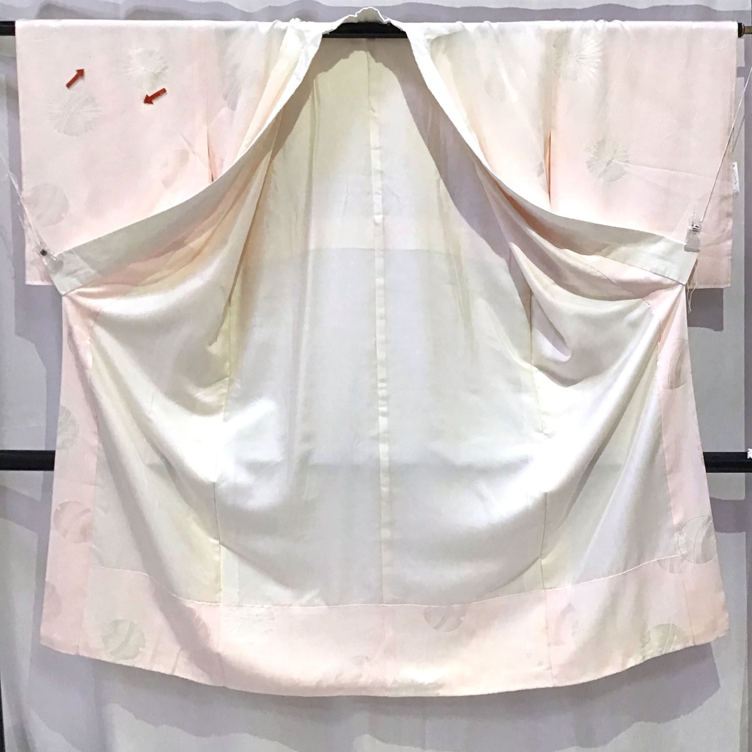 身丈:約126㎝、袖:約47㎝、裄:約64㎝、後幅:約30㎝、前幅:約27㎝、状態ランク:C 商品は画像に写っているものが全てです。右袖の前後にインク汚れのような黒点が見受けられます。その他状態は画像をご確認ください。
