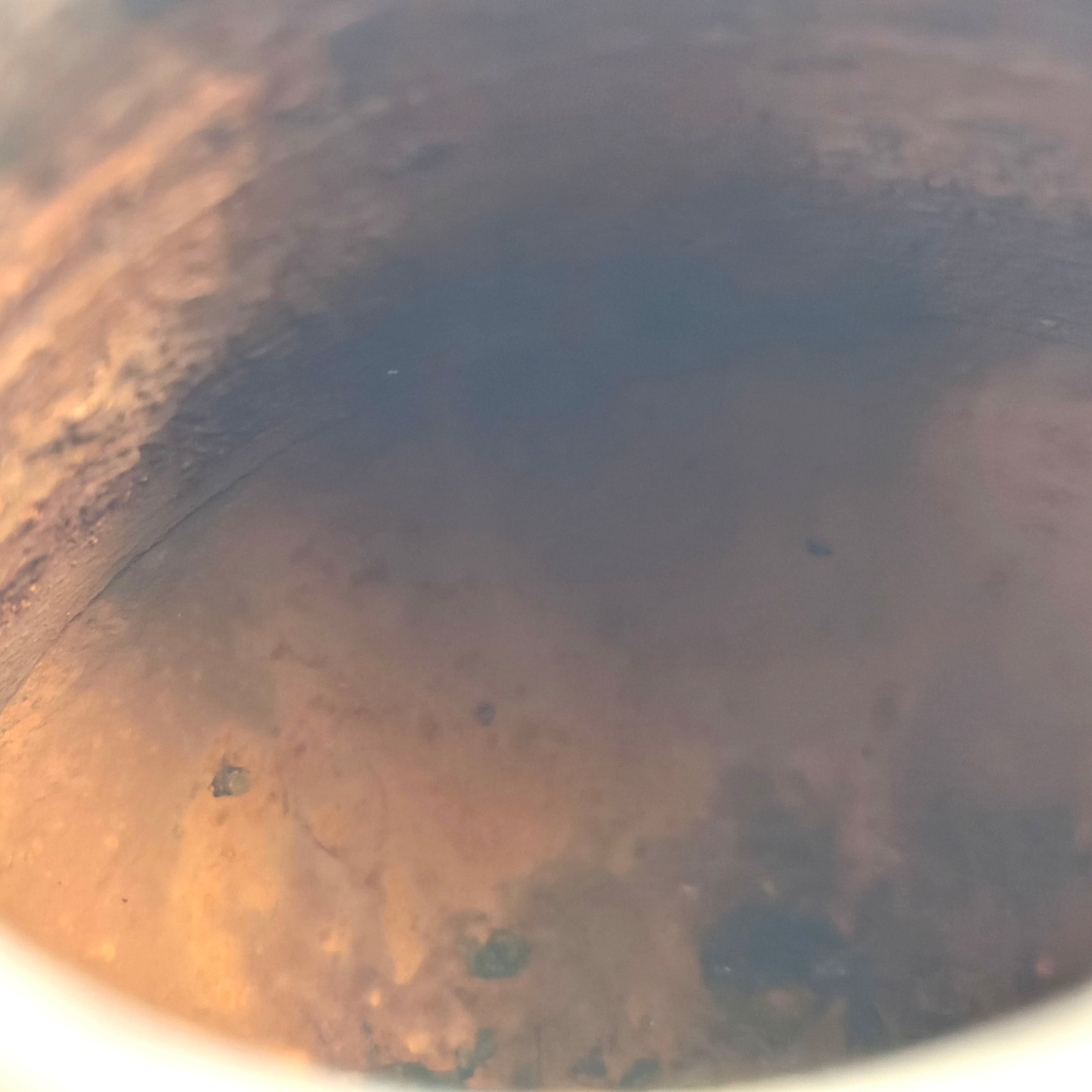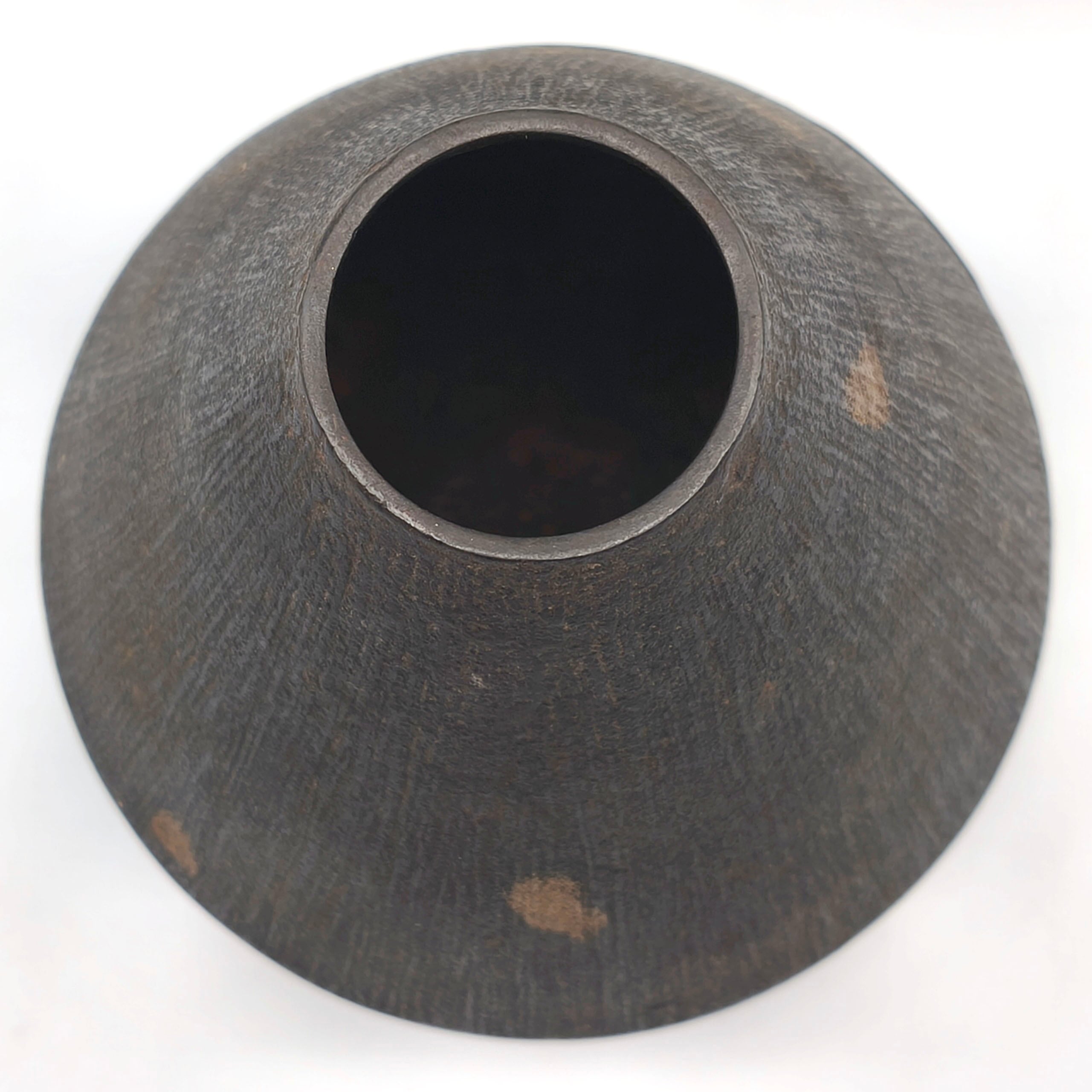 花器サイズ(胴直径×高さ):約165×180㎜、口径:約45㎜、共箱なし、状態ランク:D 商品は画像に写っているものが全てです。内側全体にサビ汚れが見受けられます。その他状態は画像をご確認ください。