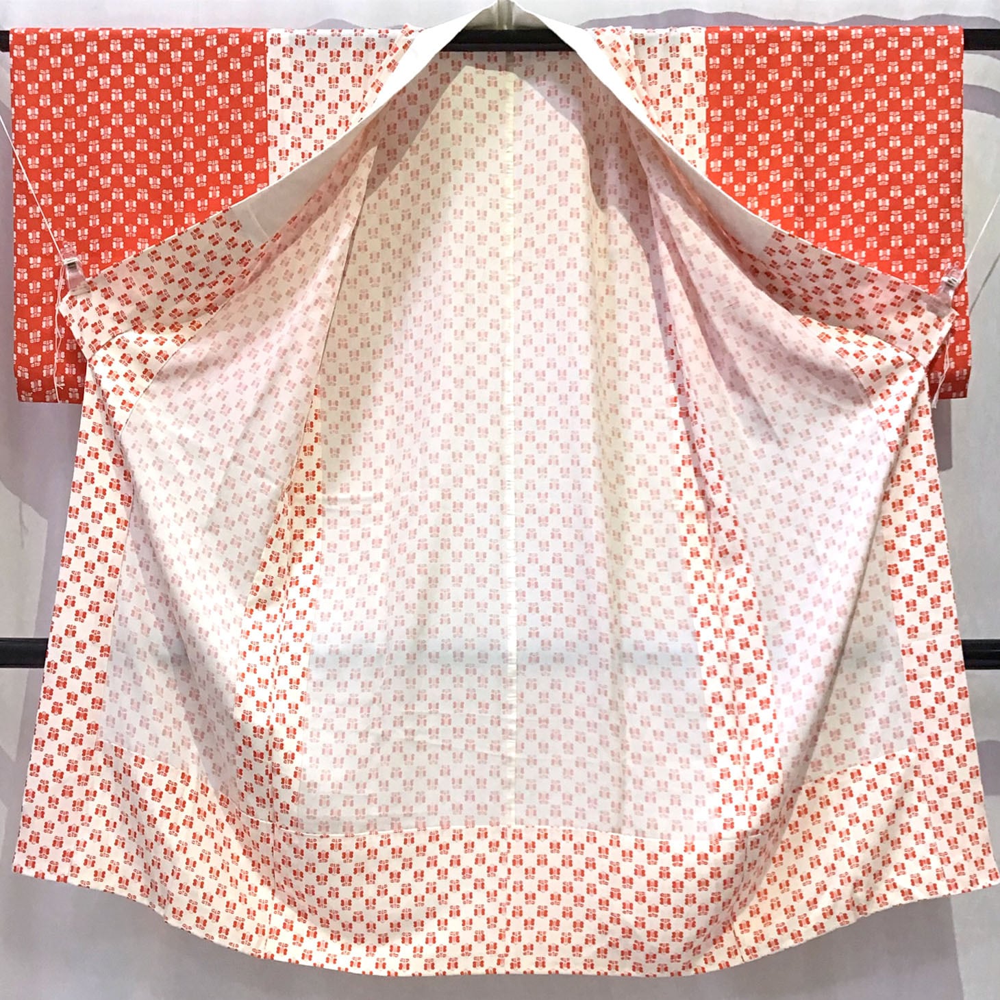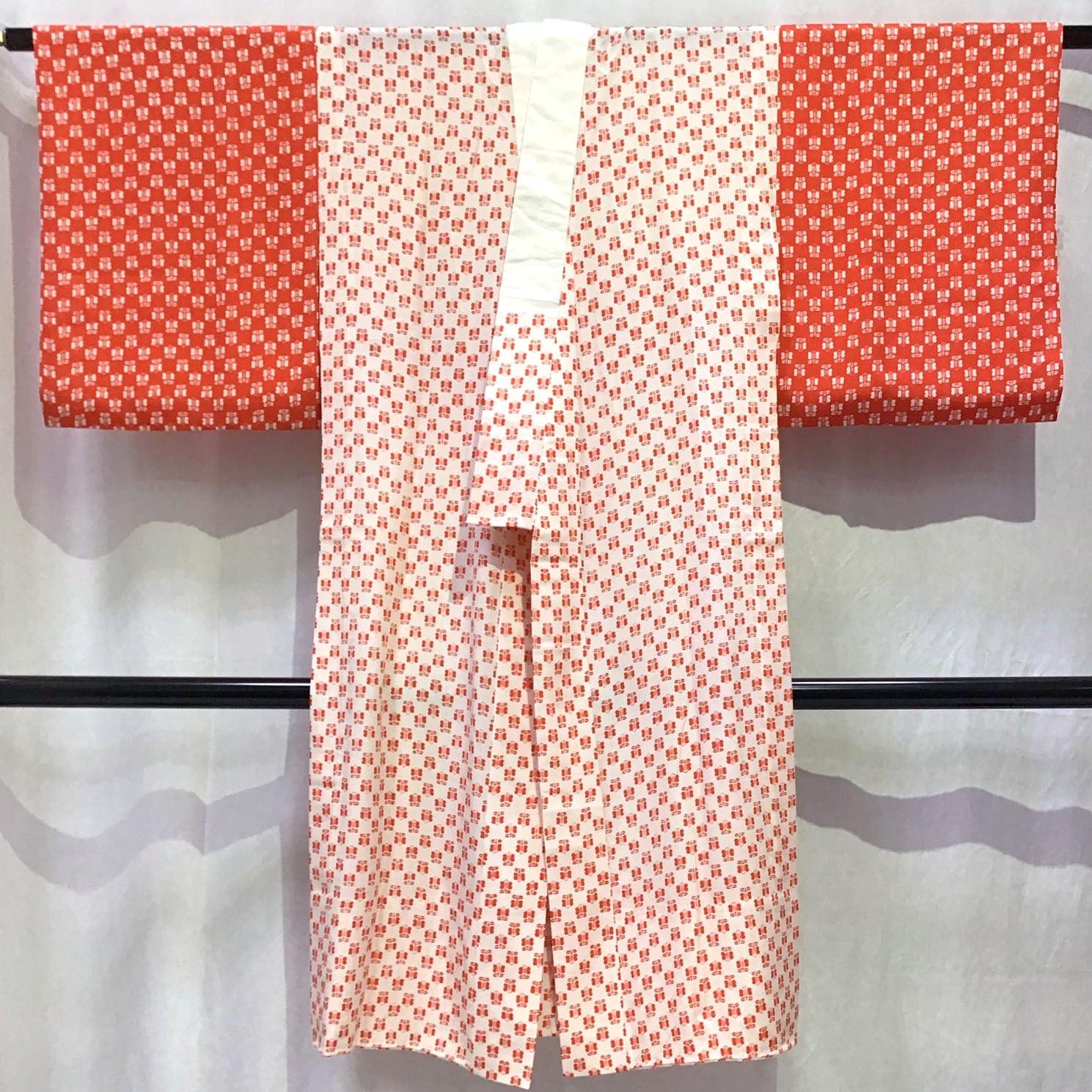 身丈:約120㎝、袖:約47㎝、裄:約63㎝、後幅:約30㎝、前幅:約27.5㎝、状態ランク:C 商品は画像に写っているものが全てです。背中部分にシミ汚れが見受けられます。その他状態は画像をご確認ください。