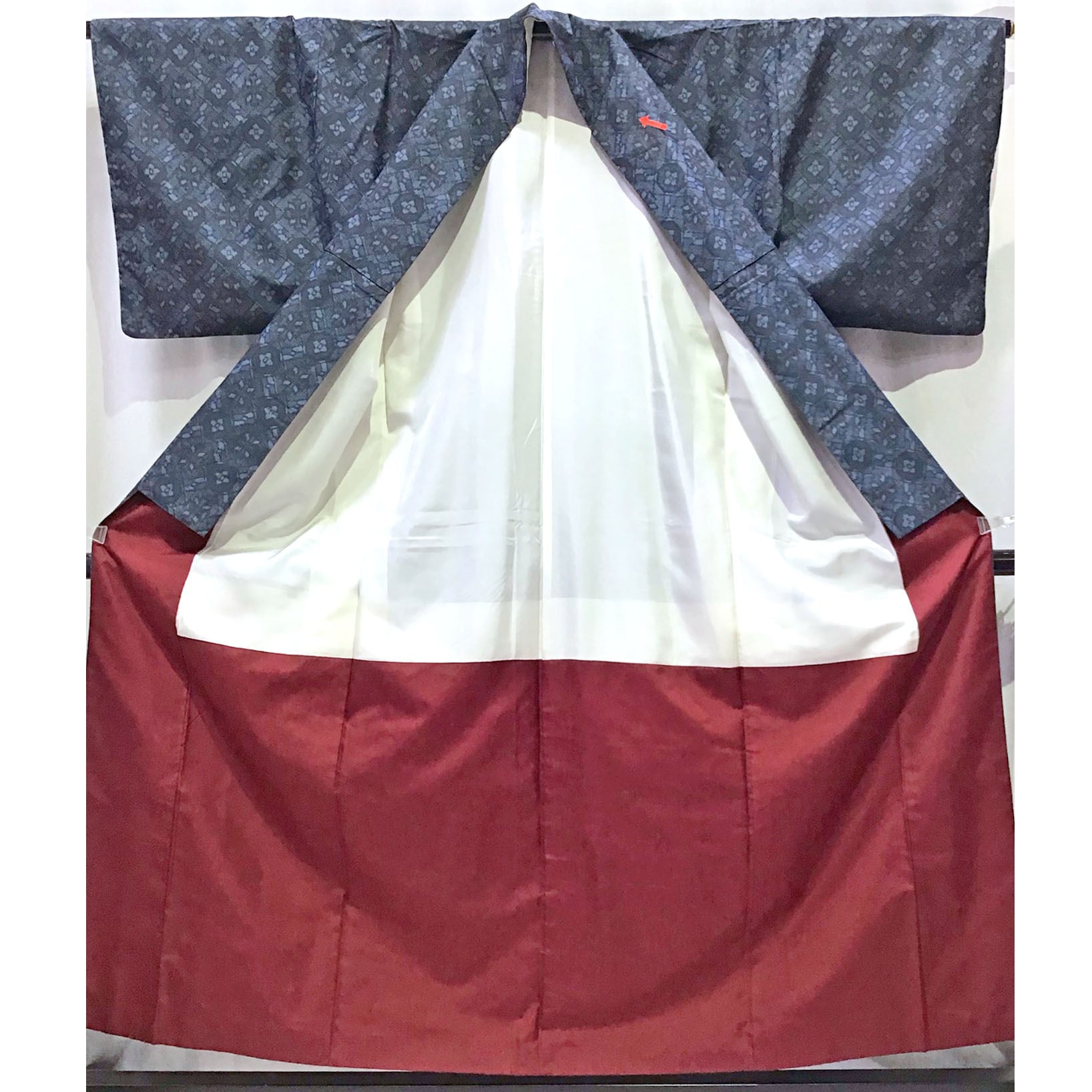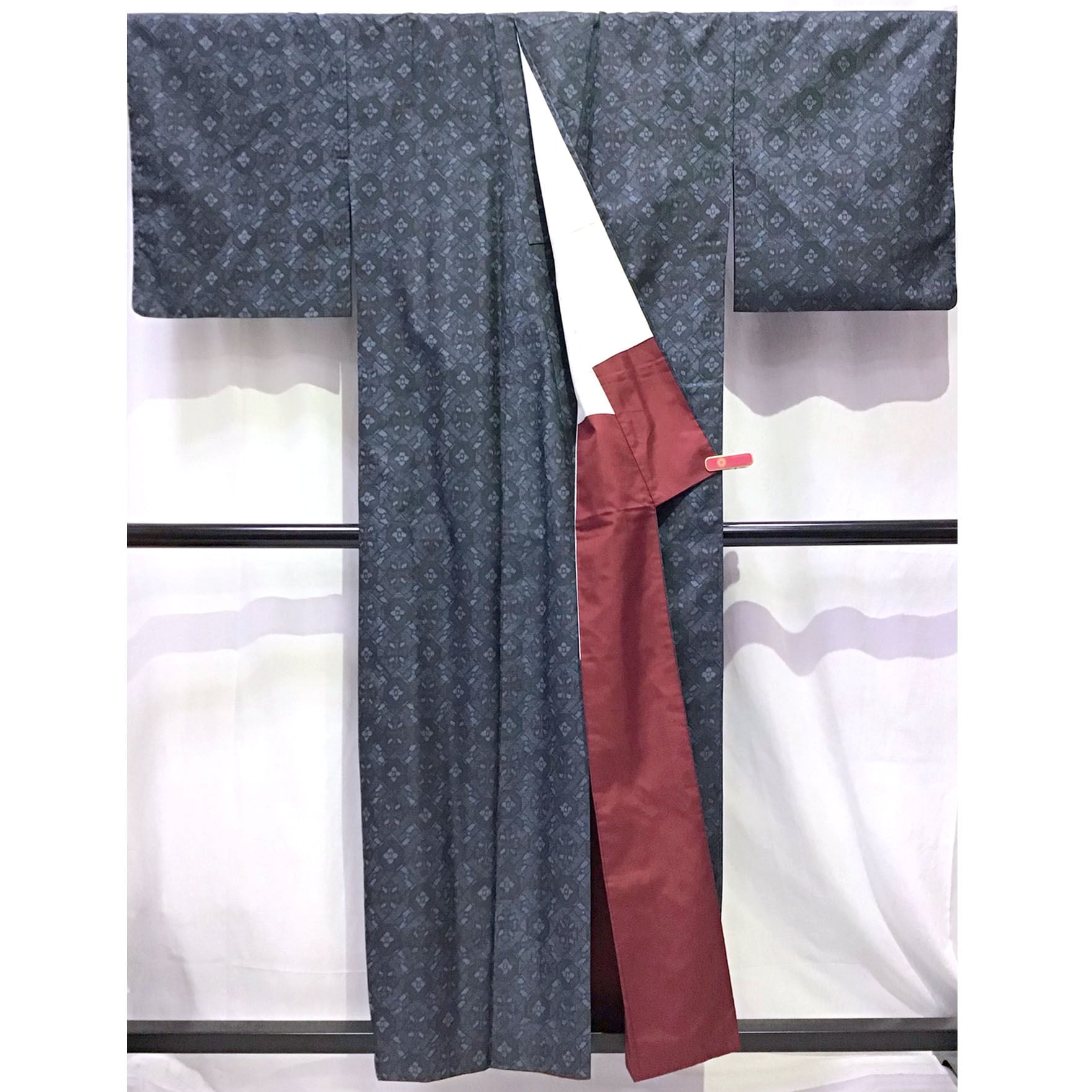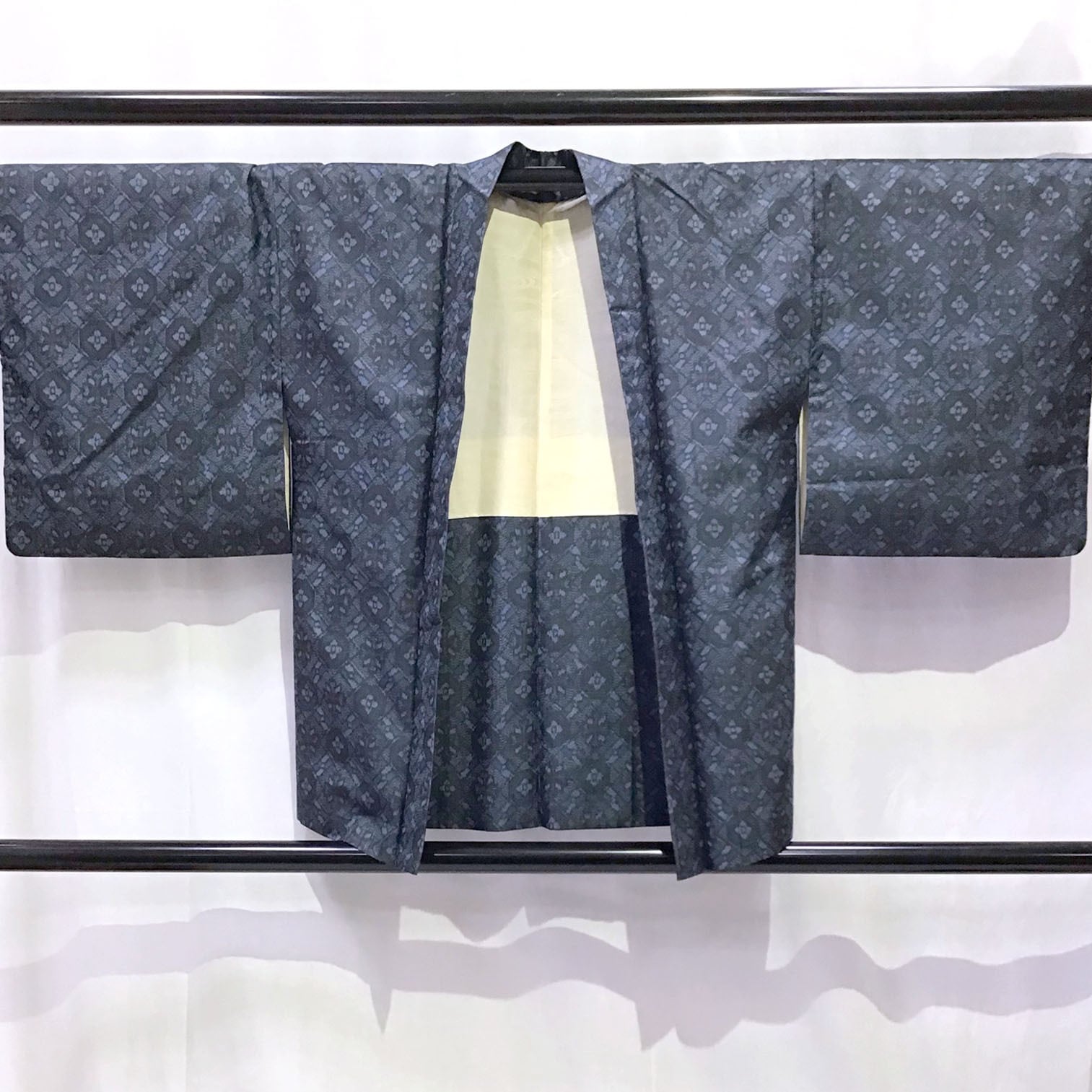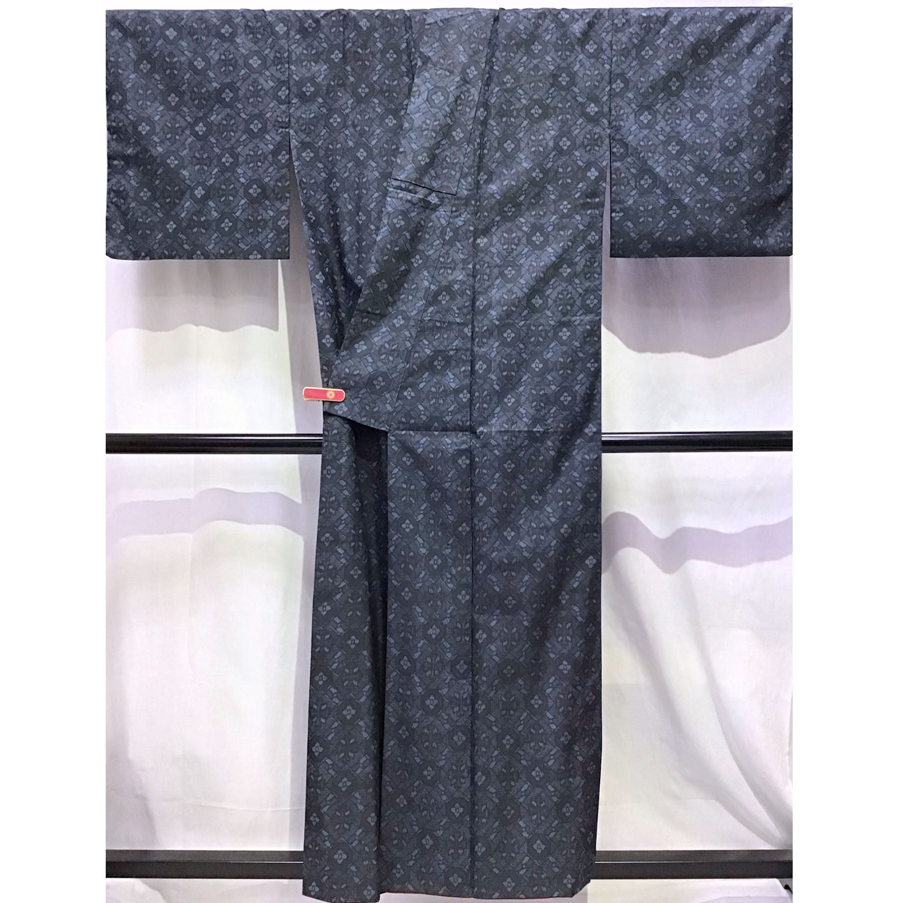 身丈:約154㎝、袖:約46㎝、裄:約65㎝、後幅:約29㎝、前幅:約24㎝、アンサンブル、状態ランク:C 商品は画像に写っているものが全てです。衿にヨゴレ、羽裏に黄変が見受けられます。その他状態は画像をご確認ください。