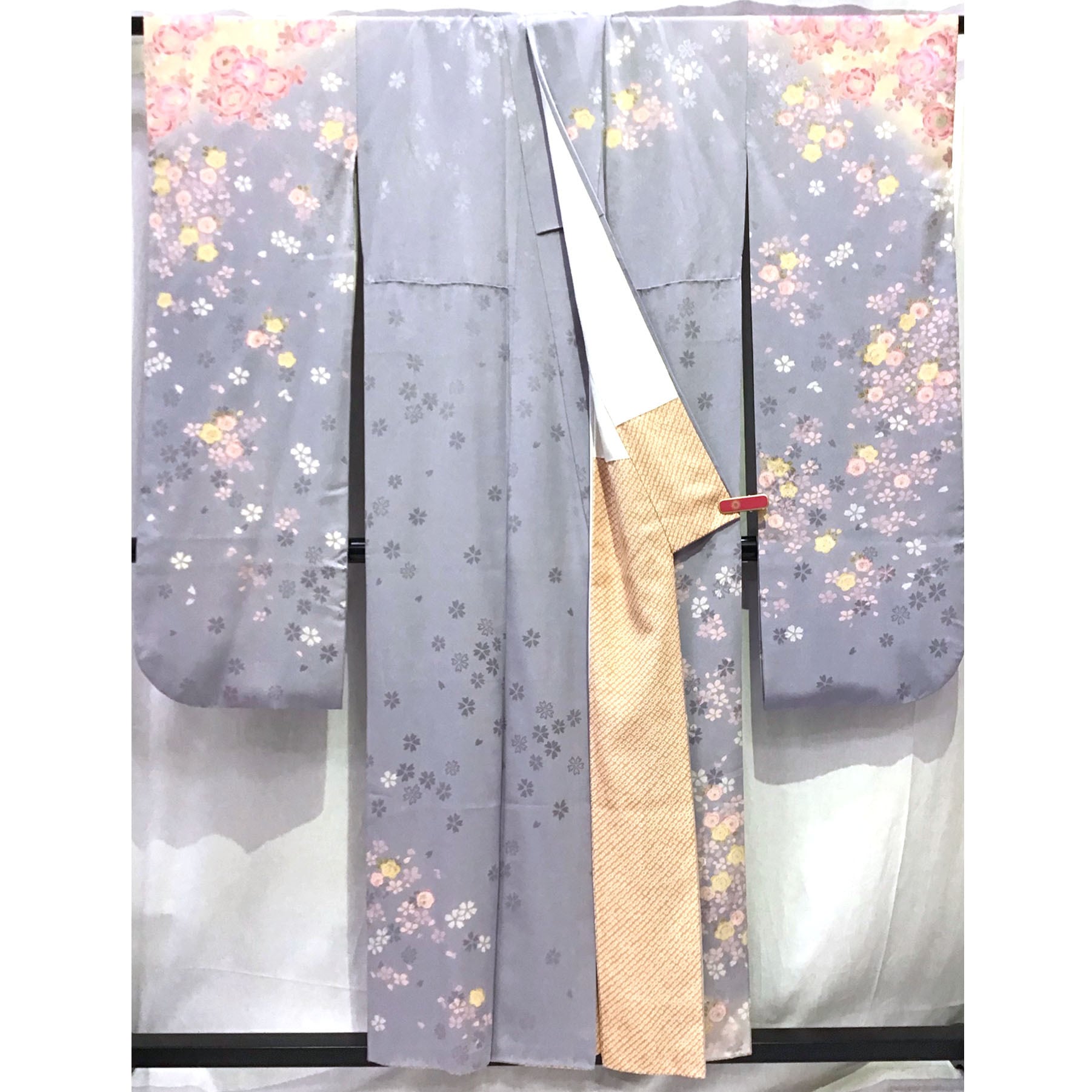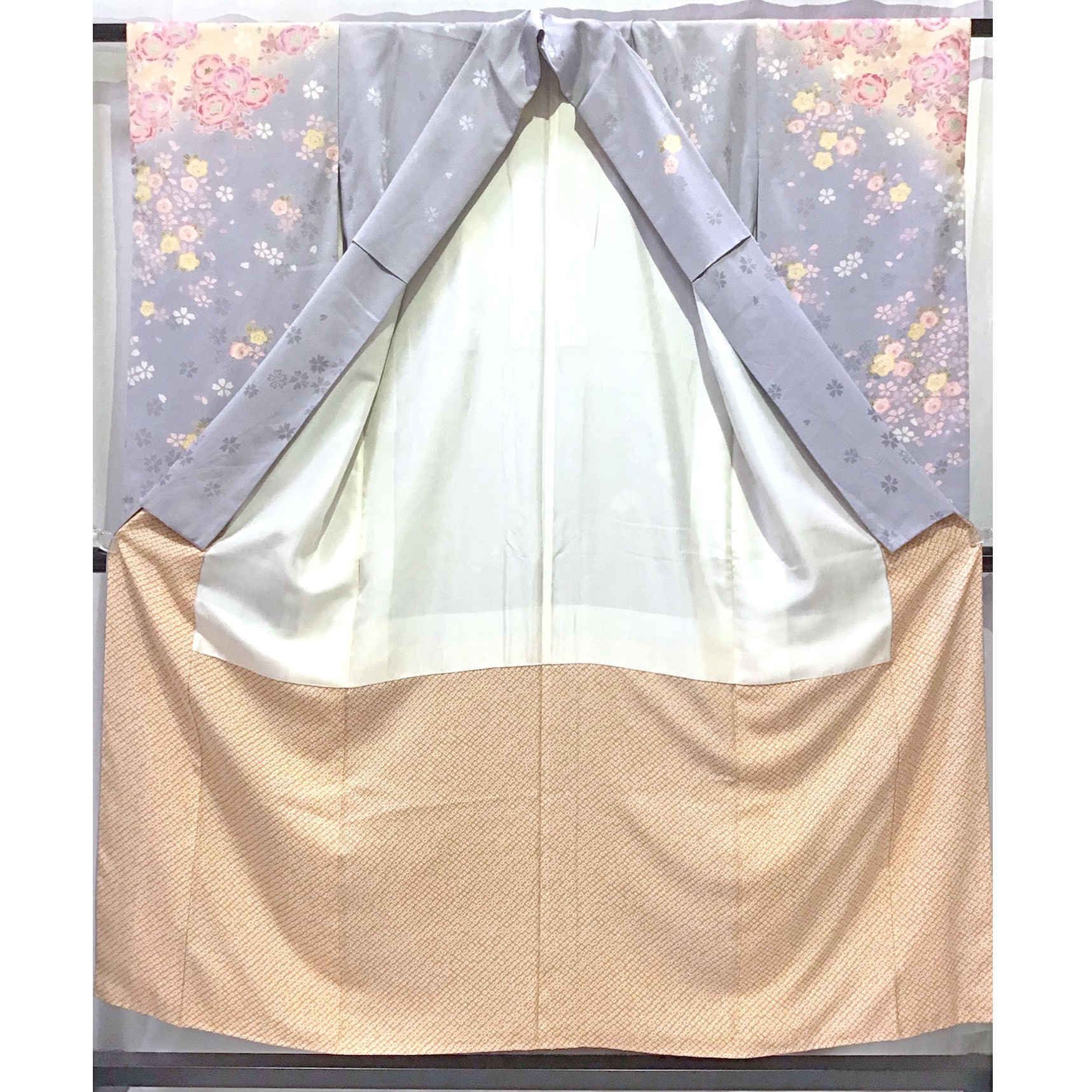身丈:約153㎝、袖:約103㎝、裄:約61㎝、後幅:約29㎝、前幅:約22.5㎝、襦袢付き、状態ランク:A 商品は画像に写っているものが全てです。目立つヨゴレなどはありません。その他状態は画像をご確認ください。