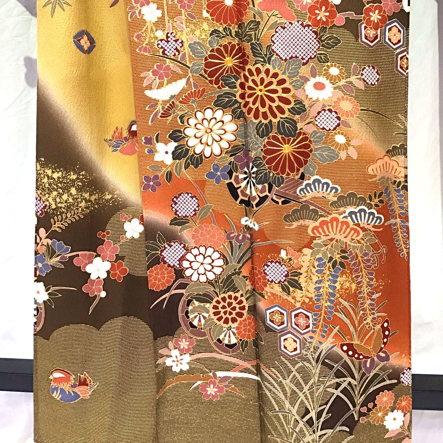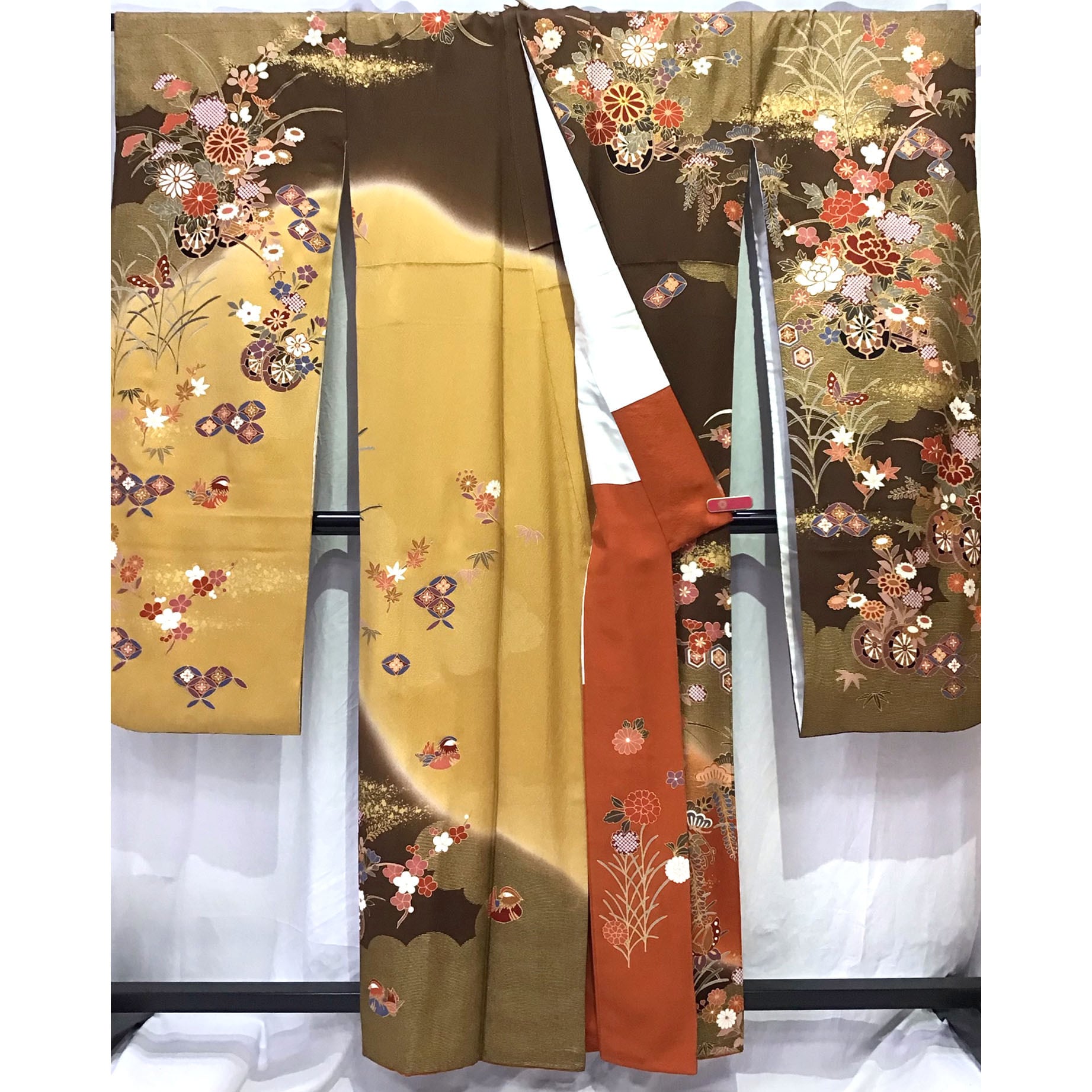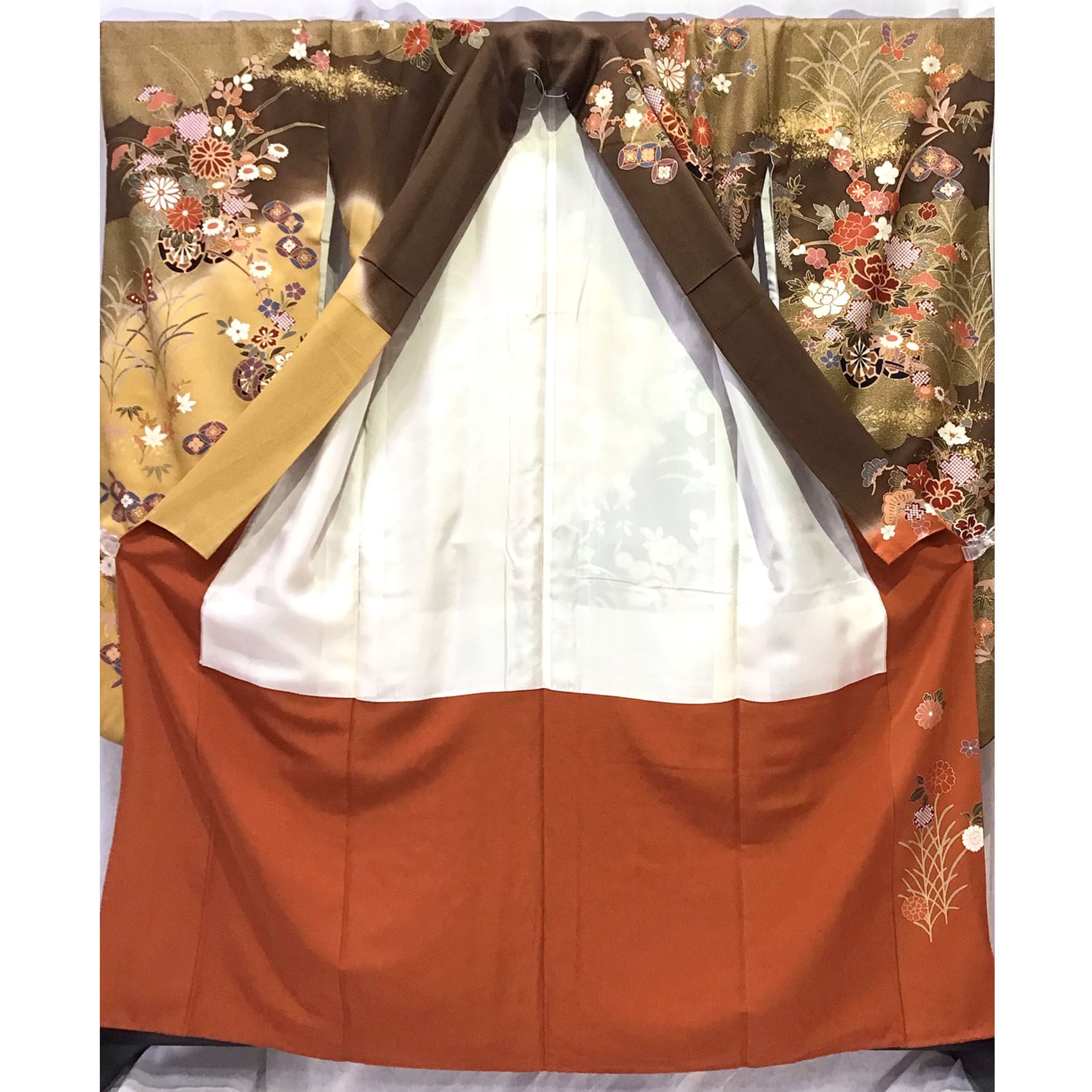 身丈:約160㎝、袖:約112㎝、裄:約66㎝、袖幅:約34㎜、後幅:約30㎝、前幅:約24㎝、襦袢付、状態ランク:A 商品は画像に写っているものが全てです。目立つヨゴレなどはありません。その他状態は画像をご確認ください。