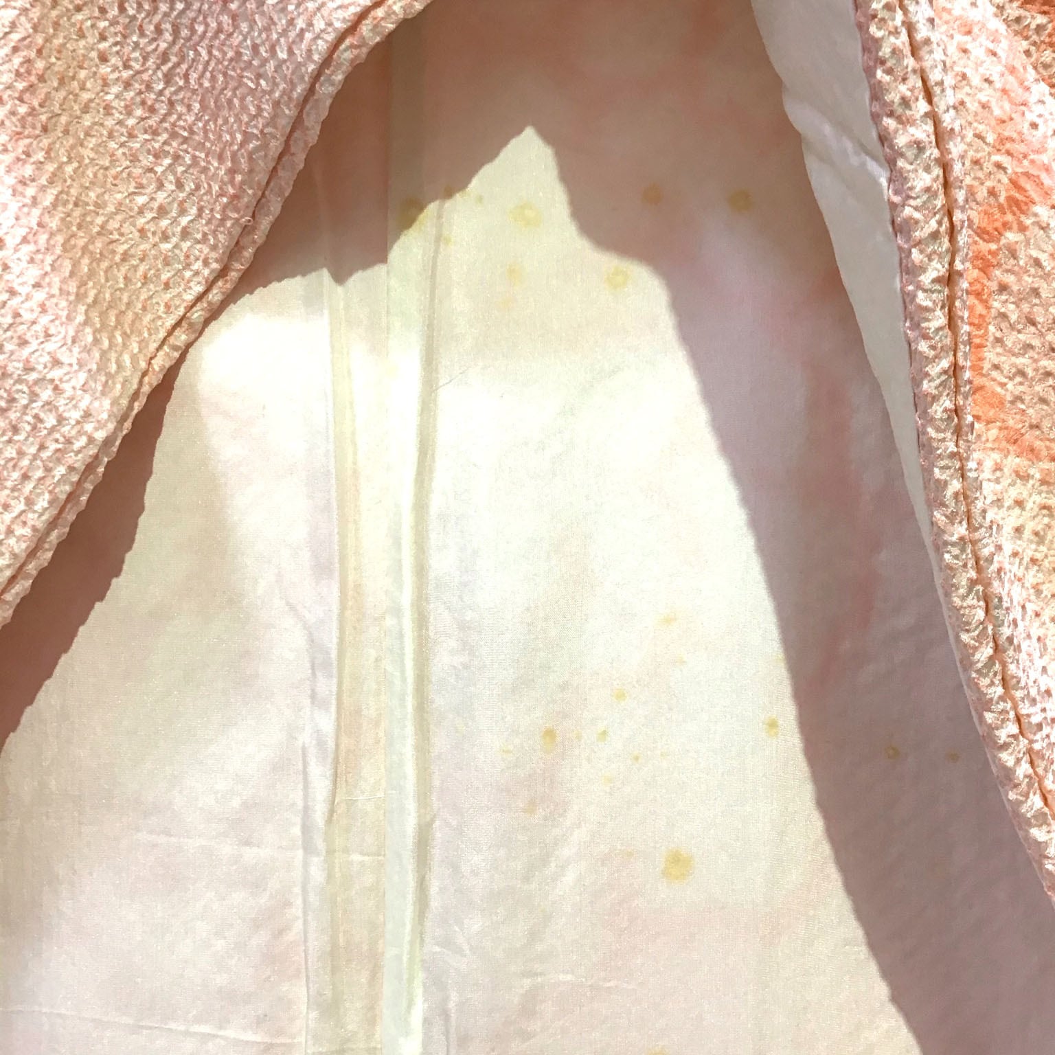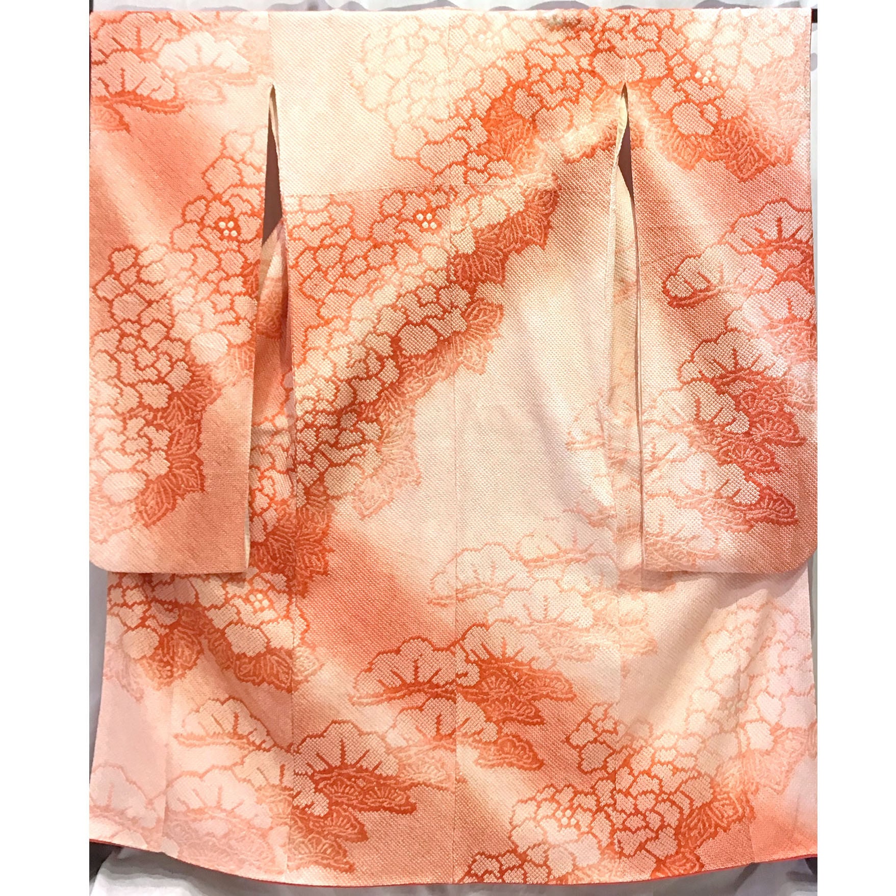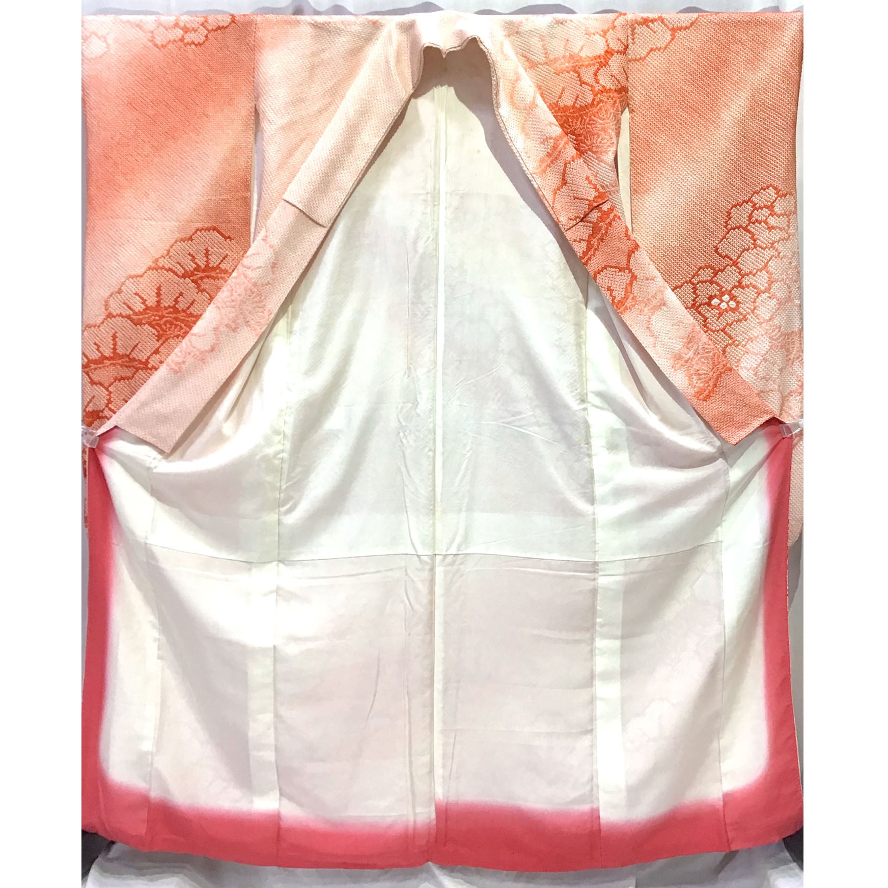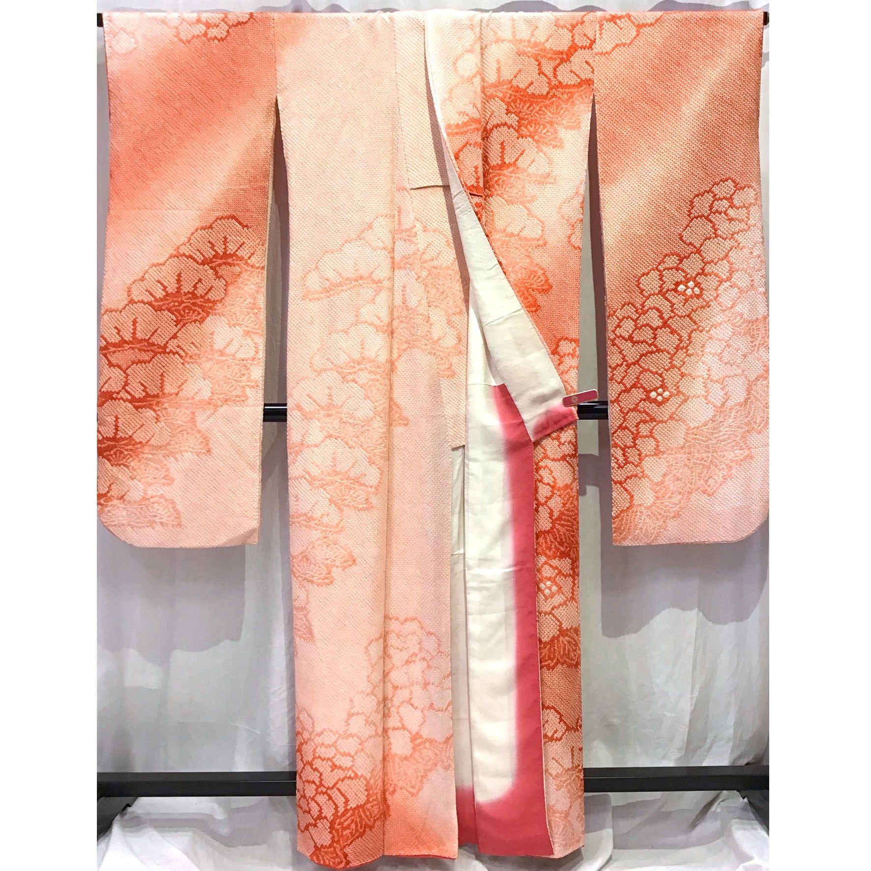 身丈:約165㎝、袖:約107㎝、裄:約67㎝、後幅:約30.5㎝、前幅:約24㎝、状態ランク:C 商品は画像に写っているものが全てです。胴裏に黄変が見受けられます。その他状態は画像をご確認ください。