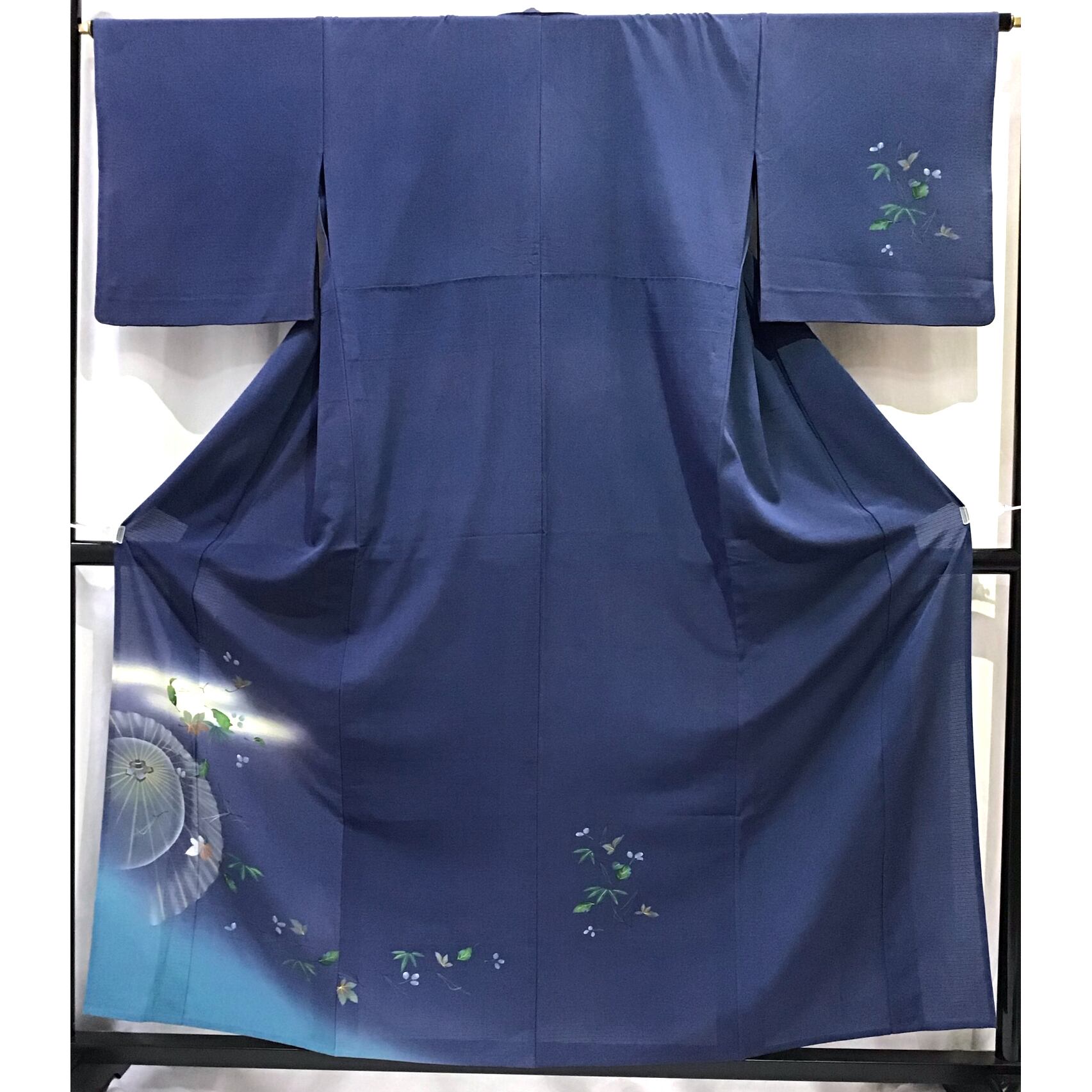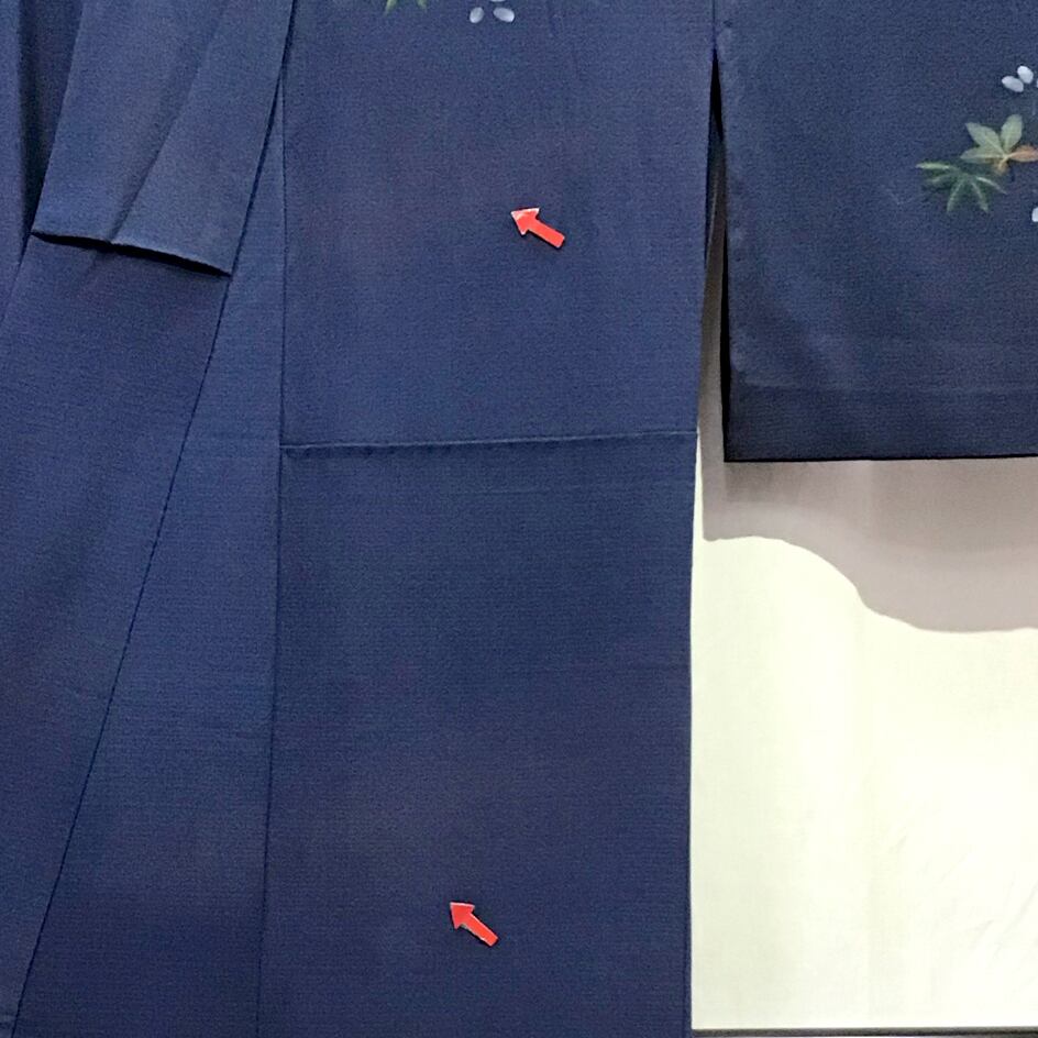 身丈:約156㎝、袖:約45㎝、裄:約65㎝、後幅:約30㎝、前幅:約23.5㎝、状態ランク:D 商品は画像に写っているものが全てです。衿にヨゴレ、全体的に色ヤケが見受けられます。その他状態は画像をご確認ください。