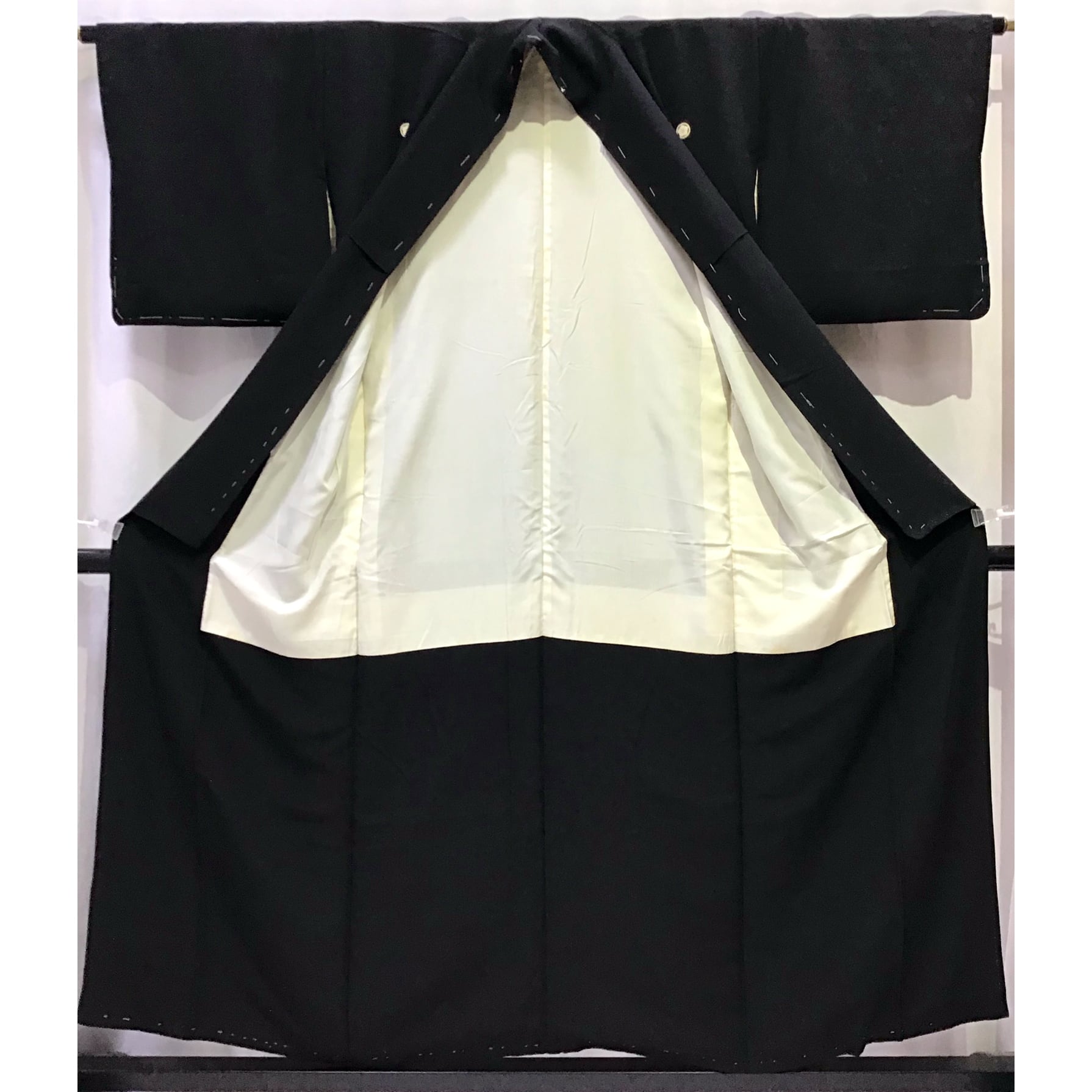 身丈:約153㎝、袖:約45㎝、裄:約64㎝、後幅:約29㎝、前幅:約24㎝、状態ランク:C 商品は画像に写っているものが全てです。胴裏に黄変、背中紋に変色が見受けられます。その他状態は画像をご確認ください。