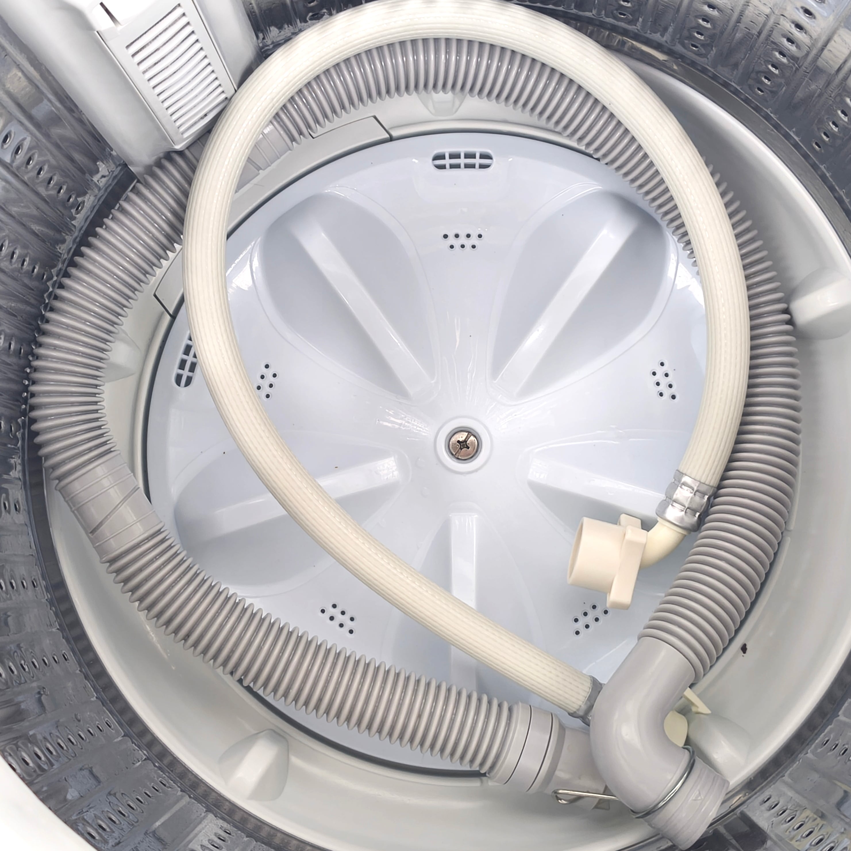 外形寸法(幅×奥行×高さ):554×568×890㎜、容量:5.5㎏、正常動作確認済、説明書なし、状態ランク:C 商品は画像に写っているものが全てです。外装の僅かなヘコミなど使用感が見受けられます。また排水ホース取付け口付近のプラスチックカバーに小さなヒビ割れが見受けられます(7枚目の画像参照)。その他状態は画像をご確認ください。