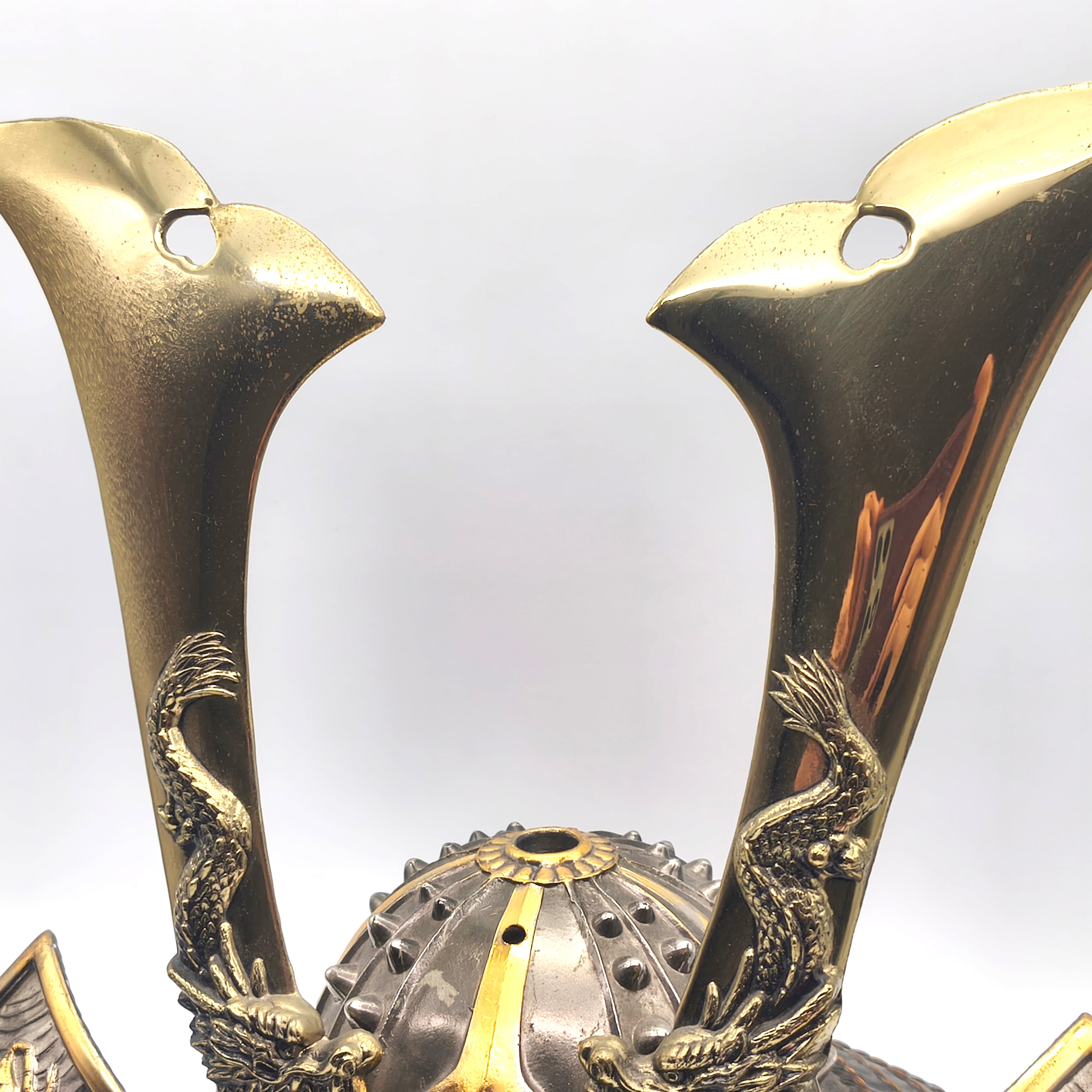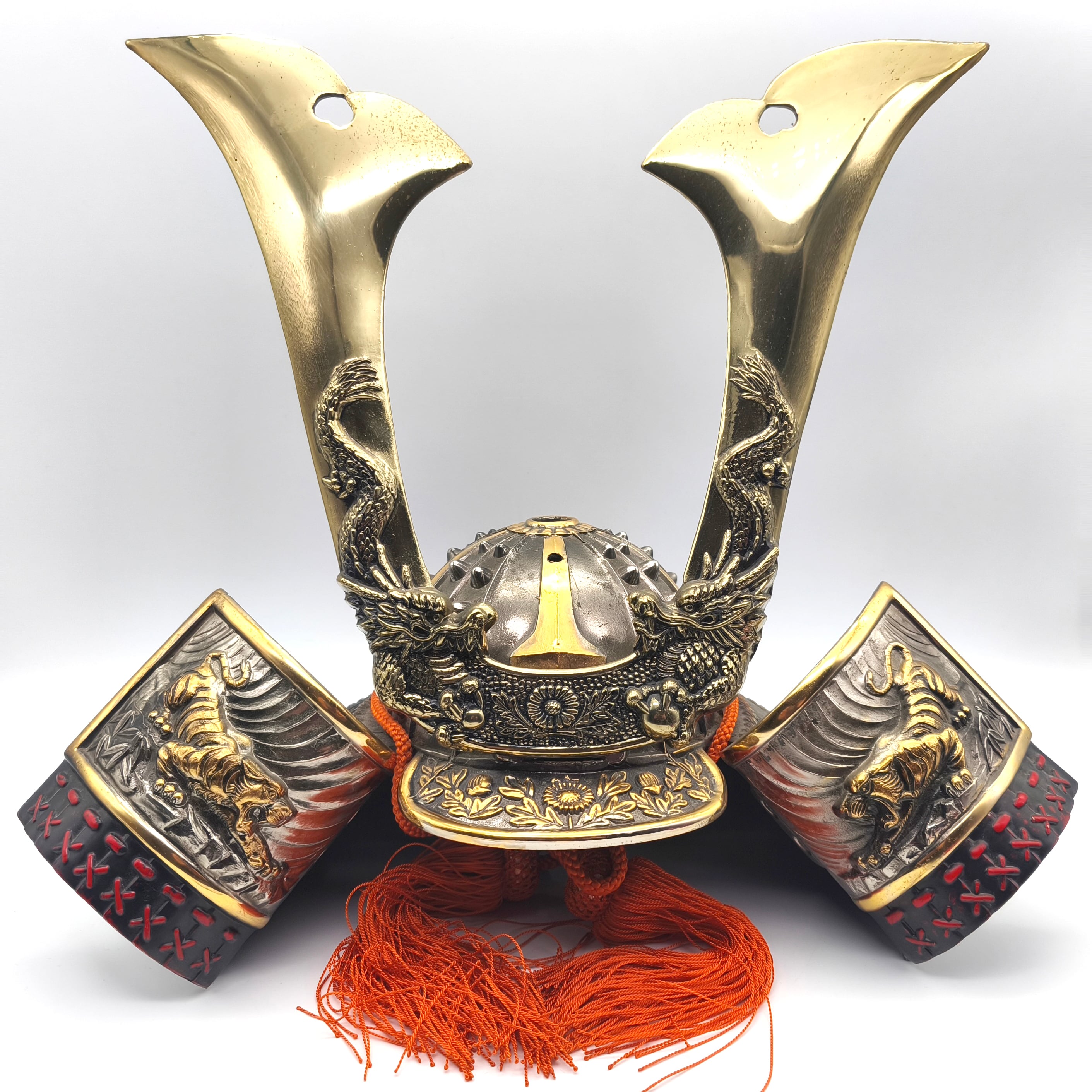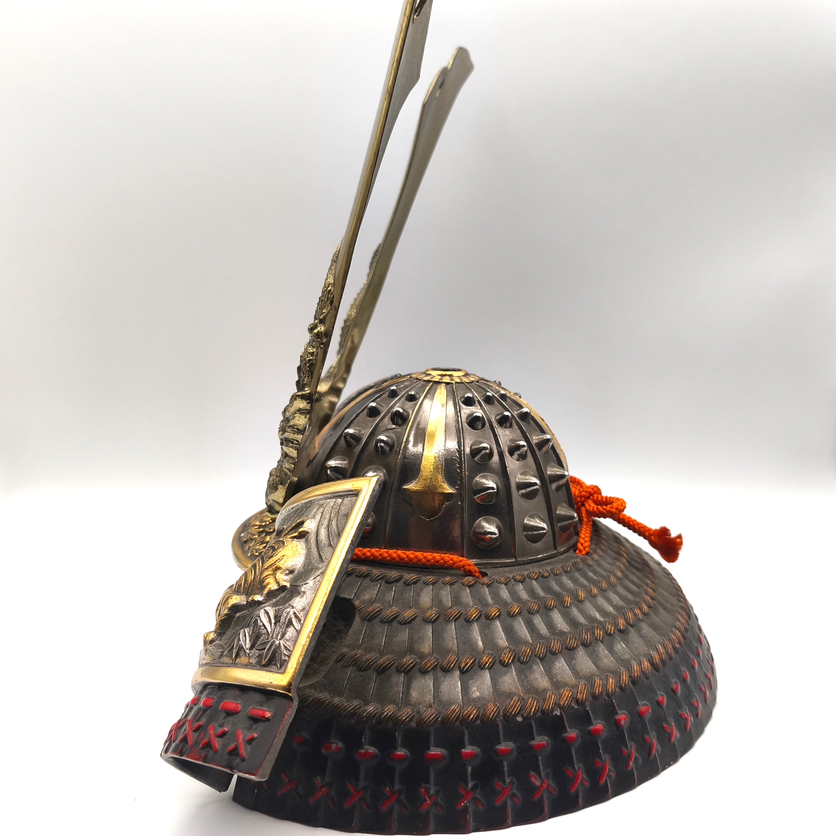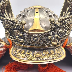 兜サイズ(幅×奥行×高さ):約415×260×355㎜、外箱なし、状態ランク:D 商品は画像に写っているものが全てです。全体的に経年劣化が見受けられます。その他状態は画像をご確認ください。※立物(前面飾り)は取り外した状態で発送致します。