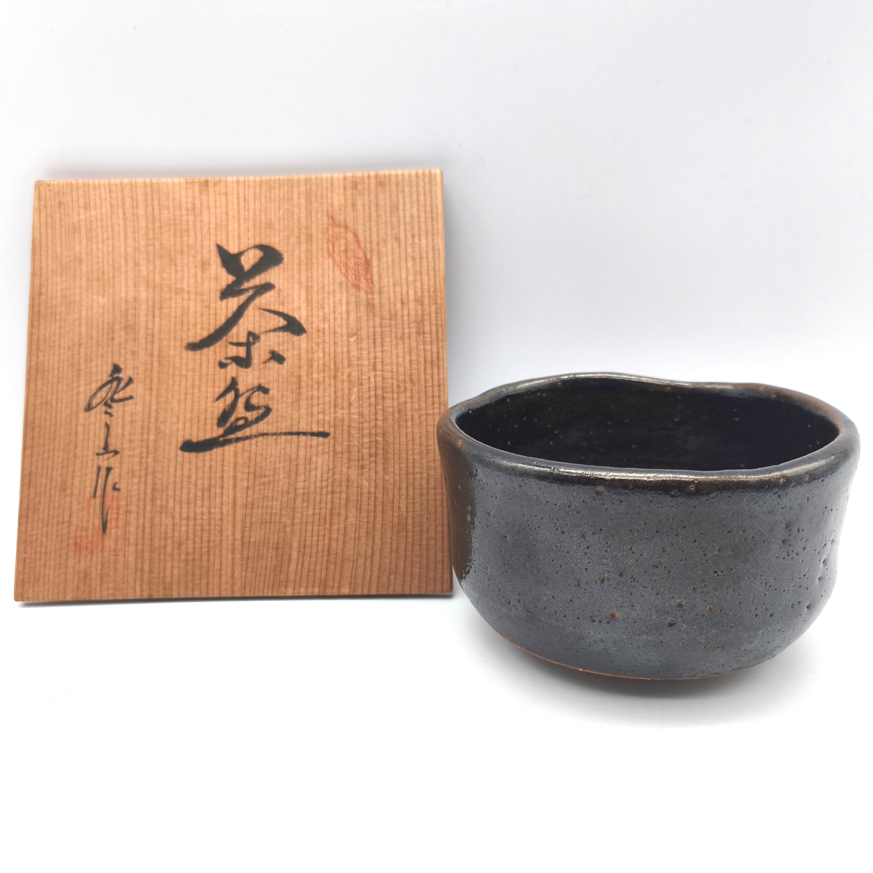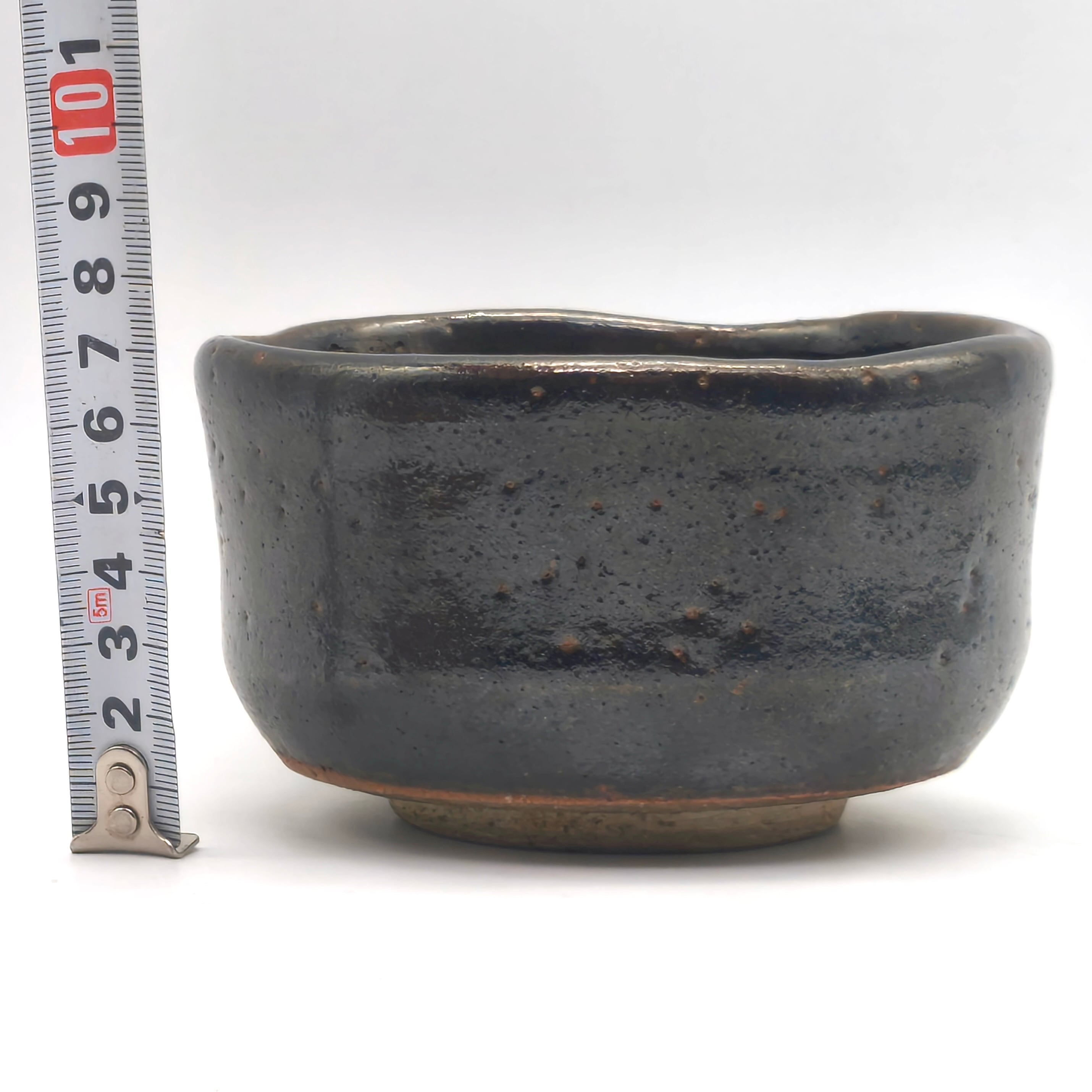 茶碗サイズ(直径×高さ):約115×70㎜、状態ランク:D 商品は画像に写っているものが全てです。共箱には『登山窯』の落款が押されていますが、抹茶碗が登山窯製のものかは不明です。また茶碗裏面にマジック書きと思われる文字が見受けられます。その他状態は画像をご確認ください。