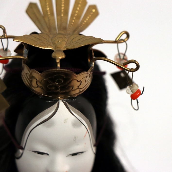 幅:約145mm、奥行:約150mm、高さ:約270mm、指欠損、髪飾り一部なし、キズ汚れあり。