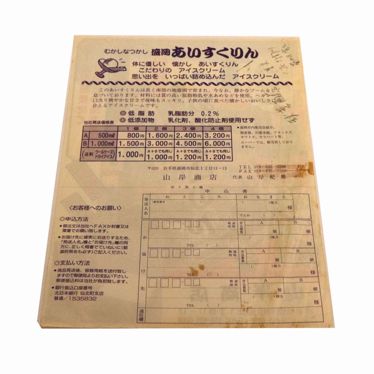 横:約182mm、縦:約256mm、走り書き・シミ・修繕の跡あります。状態ランク:D