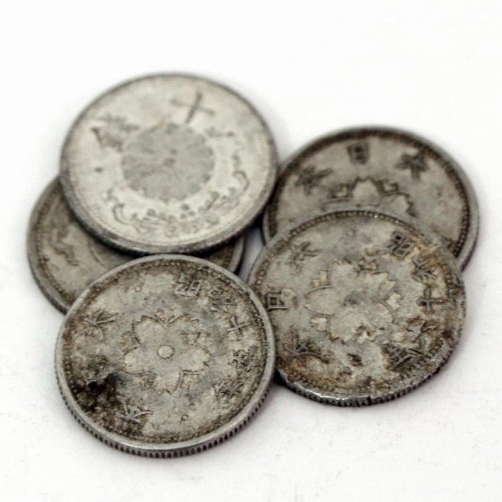 直径:約22mm、昭和15年3枚、昭和16年1枚、昭和18年1枚、計5枚のセットです。状態ランク:D