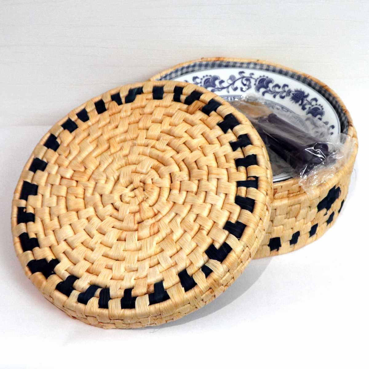 皿(直径:約215mm、高さ:約40mm)、スプーン長:180mm、ケース(直径:約255mm、高さ:約110mm)、スプーン変色あり、ケース汚れあり。