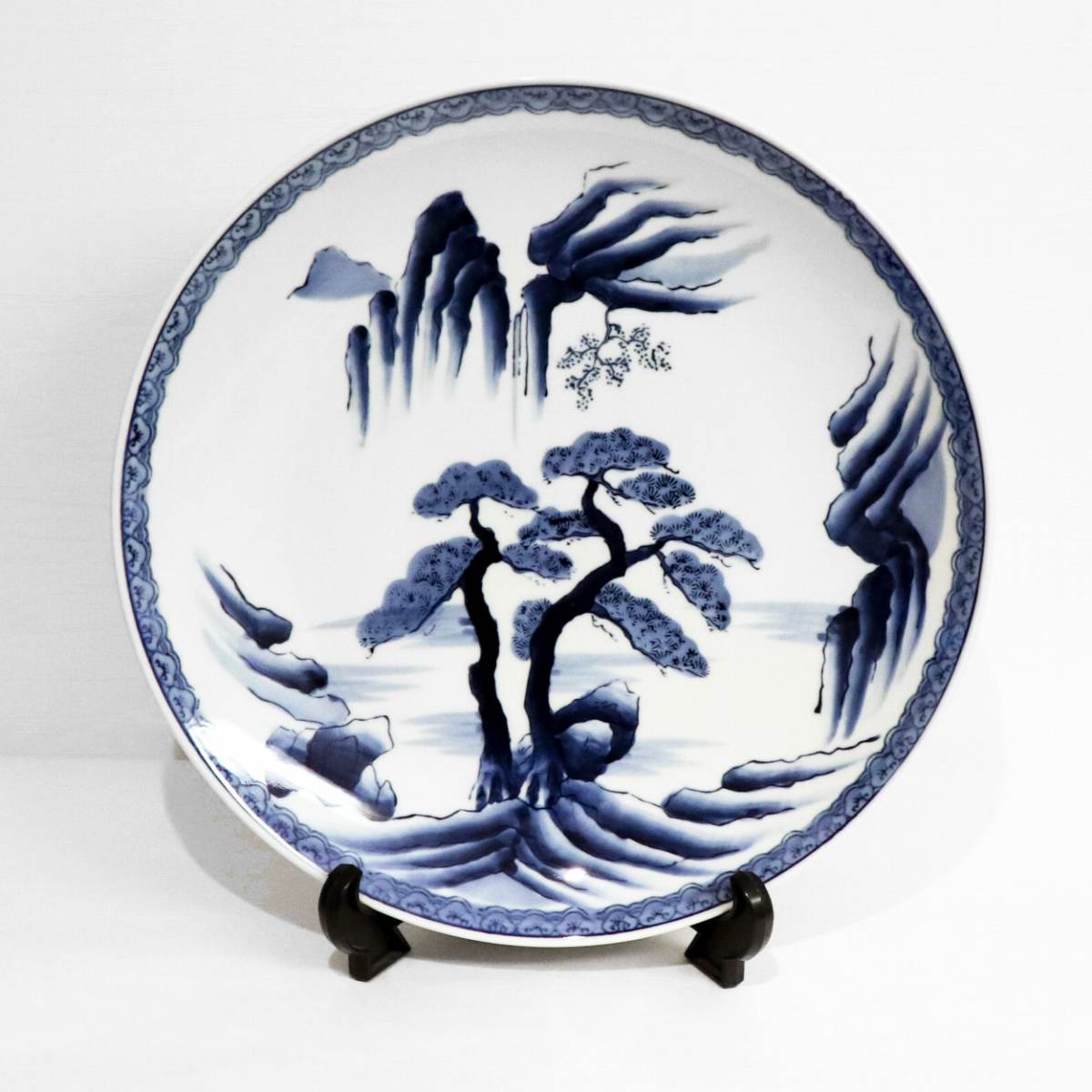 直径:約361mm、高さ:約53mm、小キズ少しあり。名前入りのため画像処理しています。皿立ては付属しません。