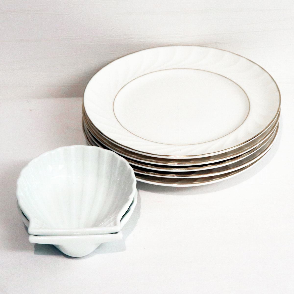小鉢(幅:約93mm、奥行:約100mm、高さ:約27mm)、丸皿(直径:約167mm、高さ:約19mm)