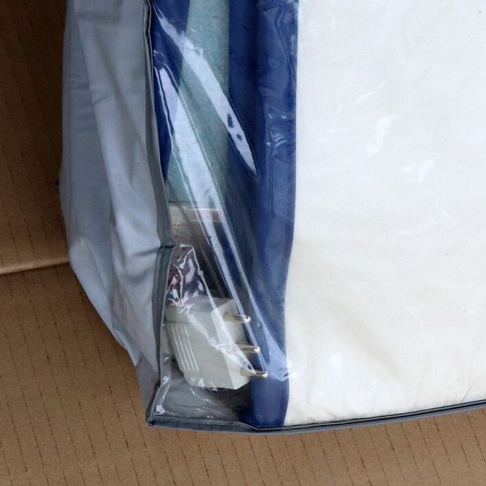 梱包サイズ(670mm×980mm×350mm)、電気敷布団です。収納袋に破れあります。