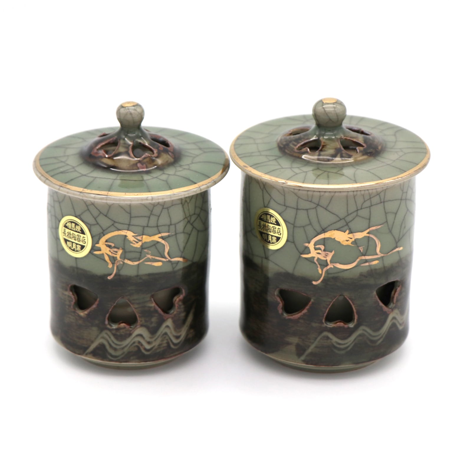夫婦湯呑①(直径:約75㎜、高さ:約115㎜)、夫婦湯呑②(直径:約70㎜、高さ:約110㎜)、状態ランク:B