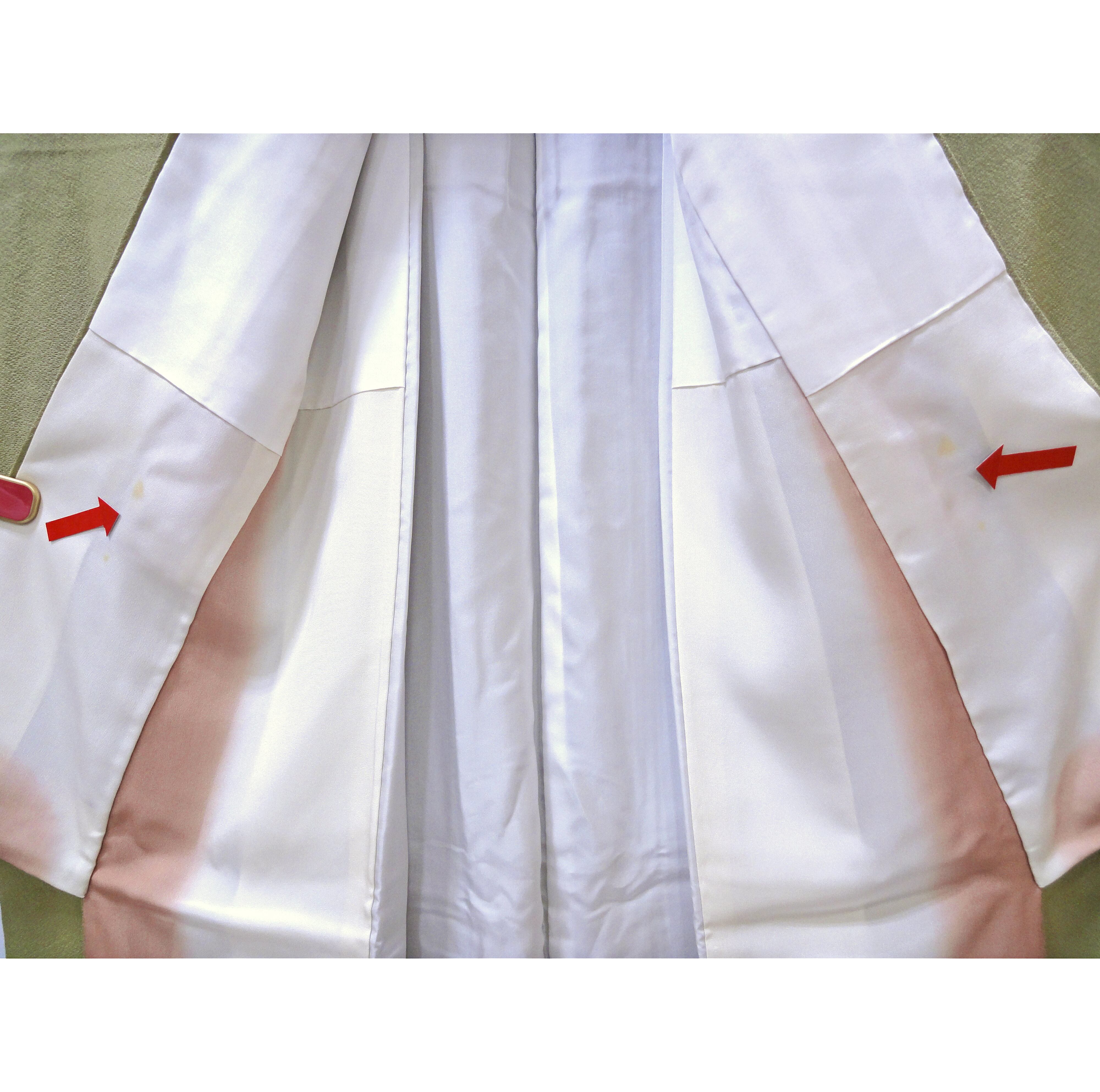 裄:約65㎝、袖:約45㎝、身丈:約161㎝、後幅:約30㎝、前幅:約24㎝、袖しつけ糸あり、状態ランク:C、内側数か所にシミあり(画像参照)