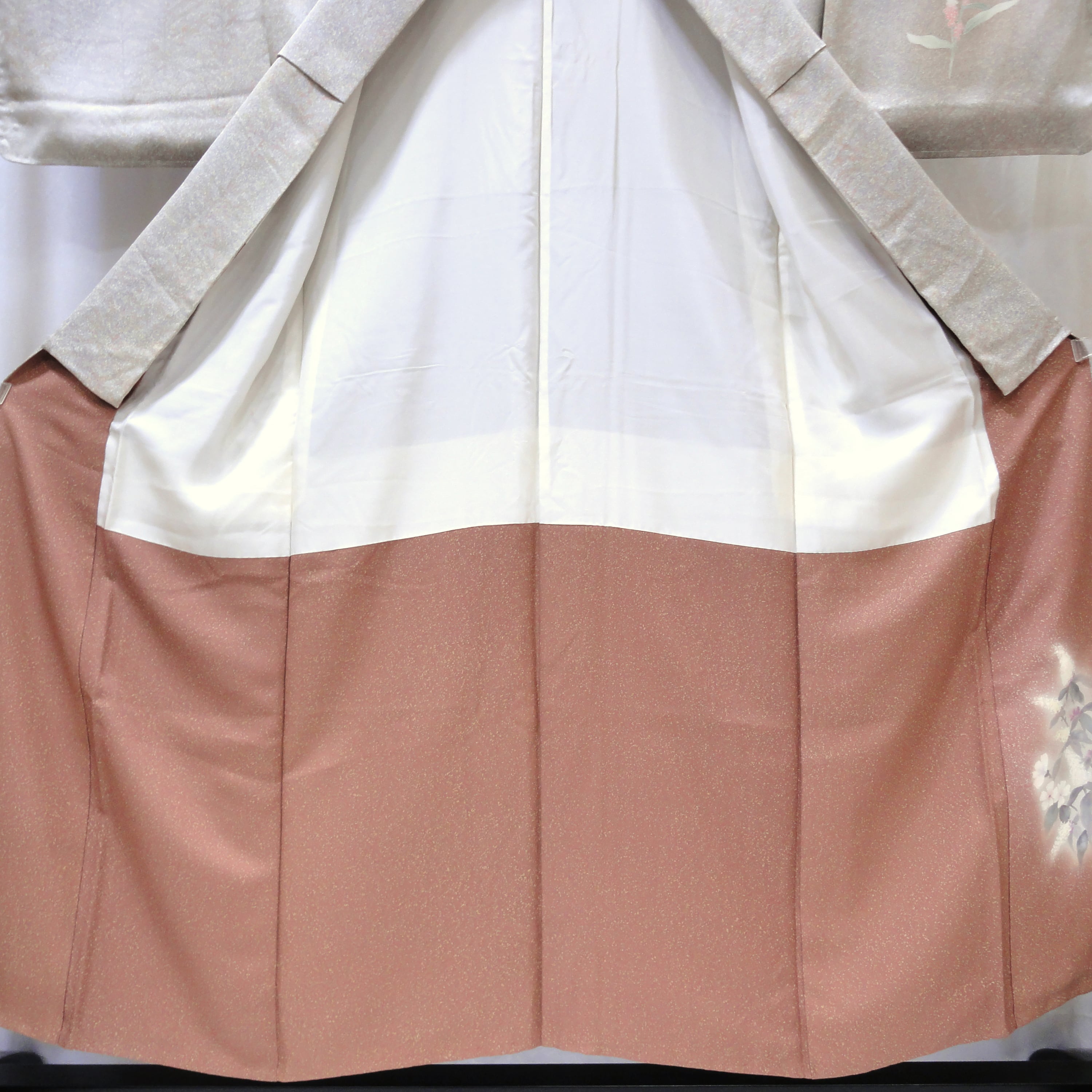 裄:約64㎝、袖:約45㎝、身丈:約151㎝、後幅:約31.5㎝、前幅:約24㎝、袖しつけ付、状態ランク:A