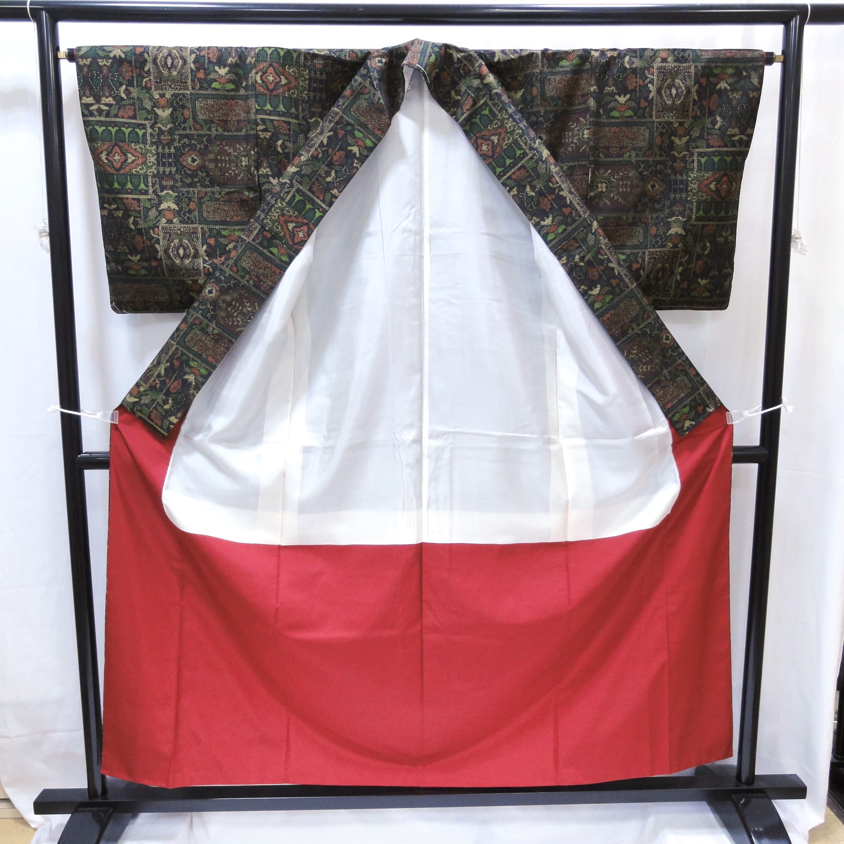 身丈:約158㎝、袖:約50㎝、裄:約64㎝、後幅:約30㎝、前幅:約24㎝、両袖しつけ付、状態ランク:A