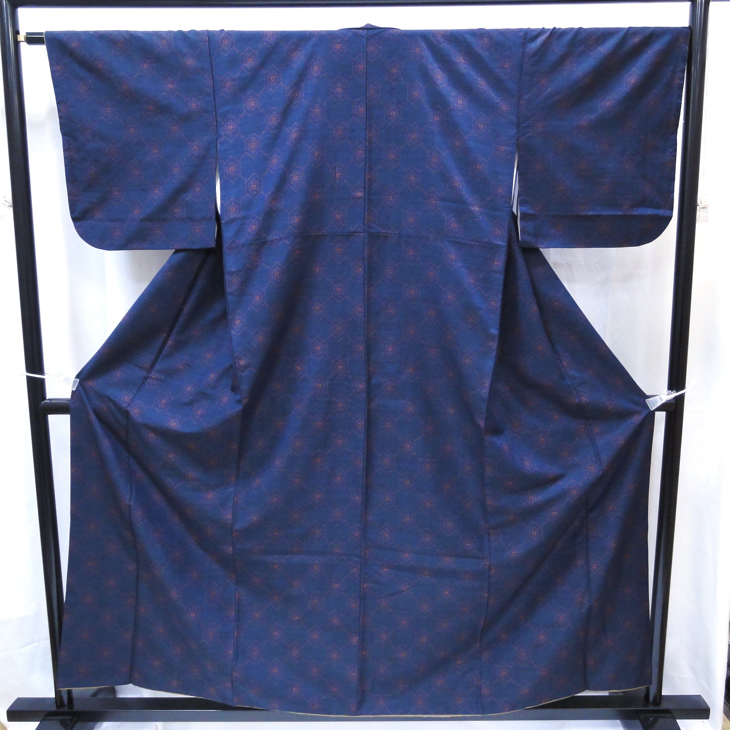 身丈:約155㎝、袖:約44㎝、裄:約64㎝、後幅:約29.5㎝、前幅:約26㎝、状態ランク:C、衿ヨゴレ、衿裏にシミ、上前にヨゴレあり