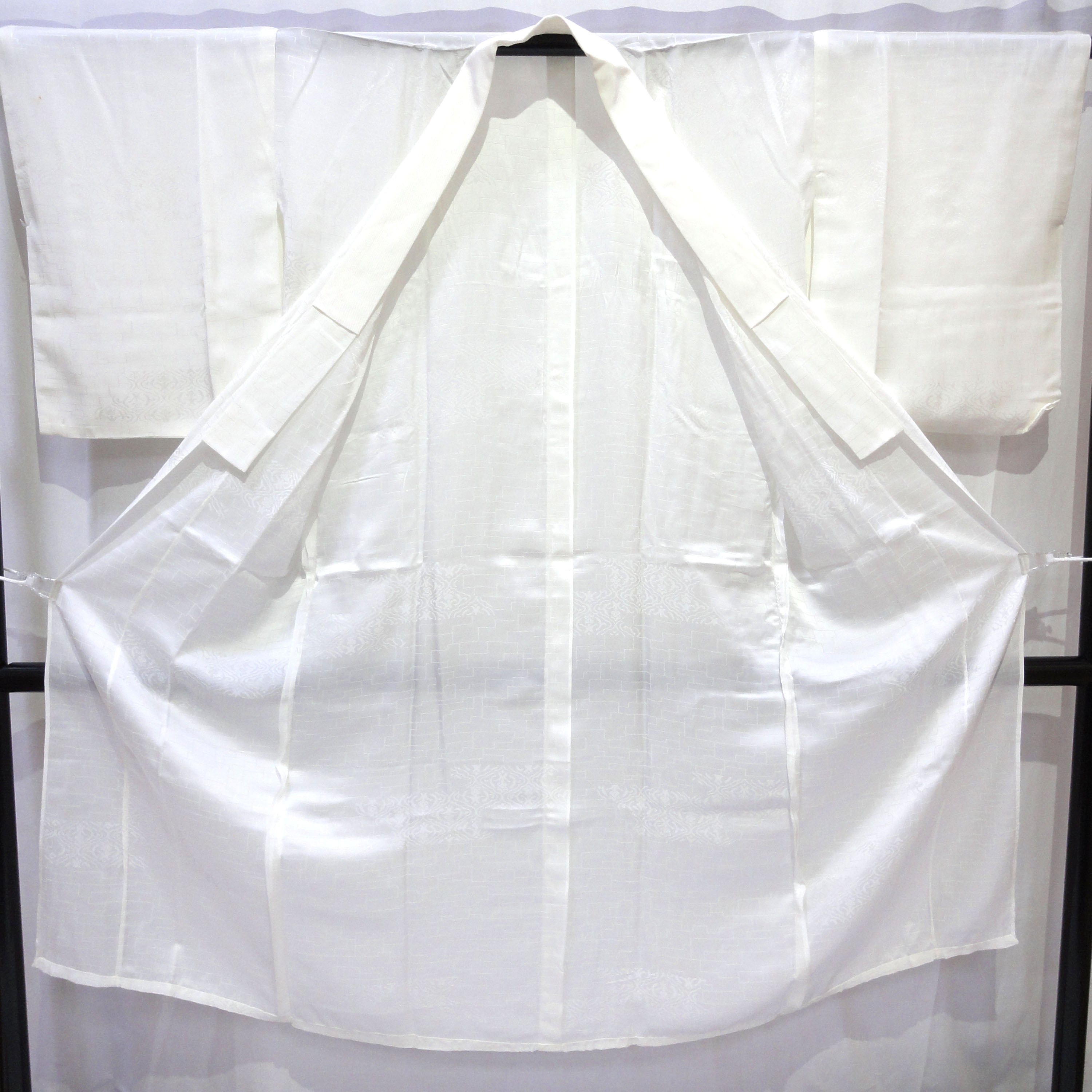 裄:約66㎝、袖:約48㎝、身丈:約129.5㎝、後幅:約33㎝、前幅:約22㎝、状態ランク:D 商品は画像に写っているものが全てです。両袖口と半衿にヨゴレが見受けられます。その他状態は画像をご確認ください。