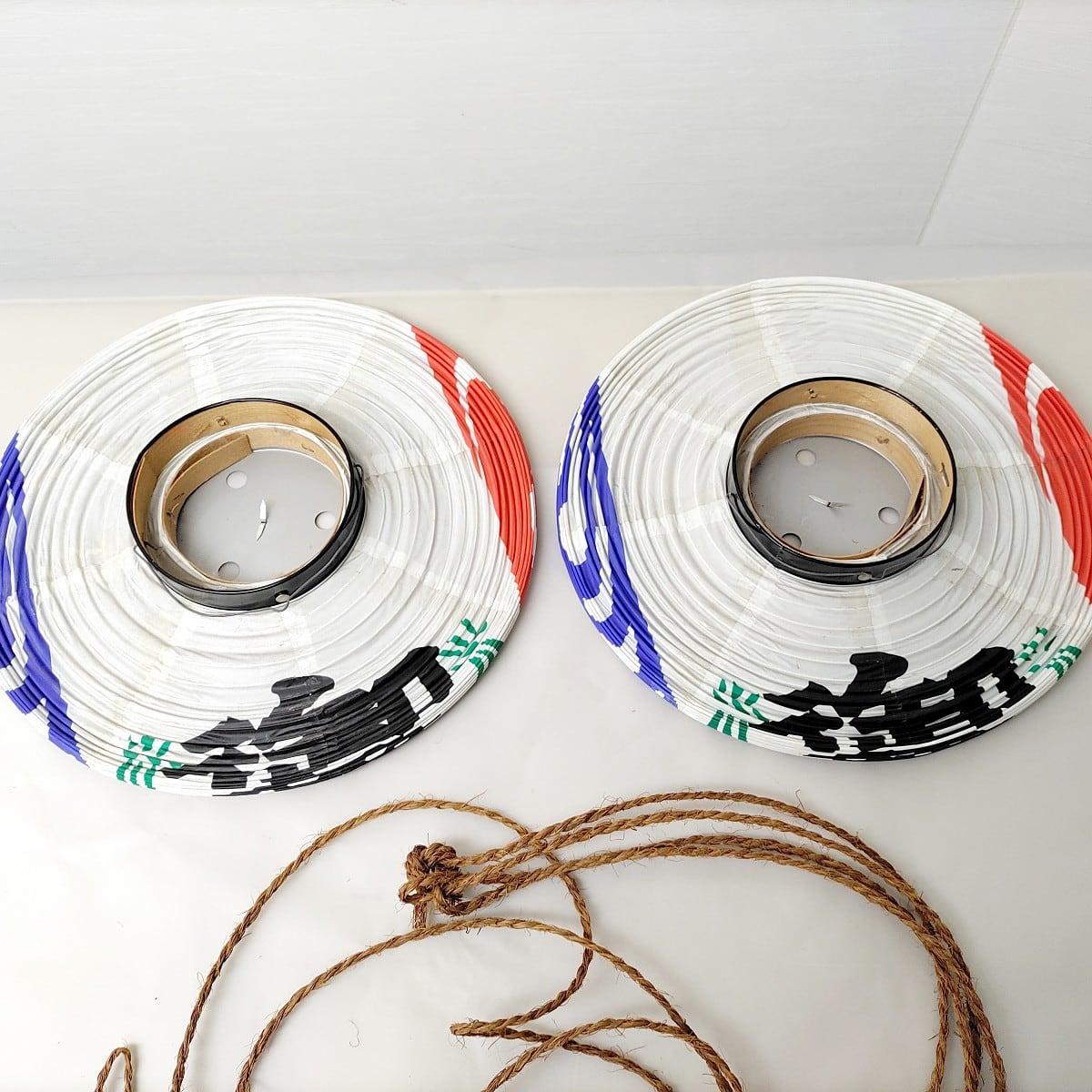 直径:約340㎜、高さ:約340㎜、2個セット、状態ランク:C 提灯にヨゴレ、吊るし紐にホツレあり