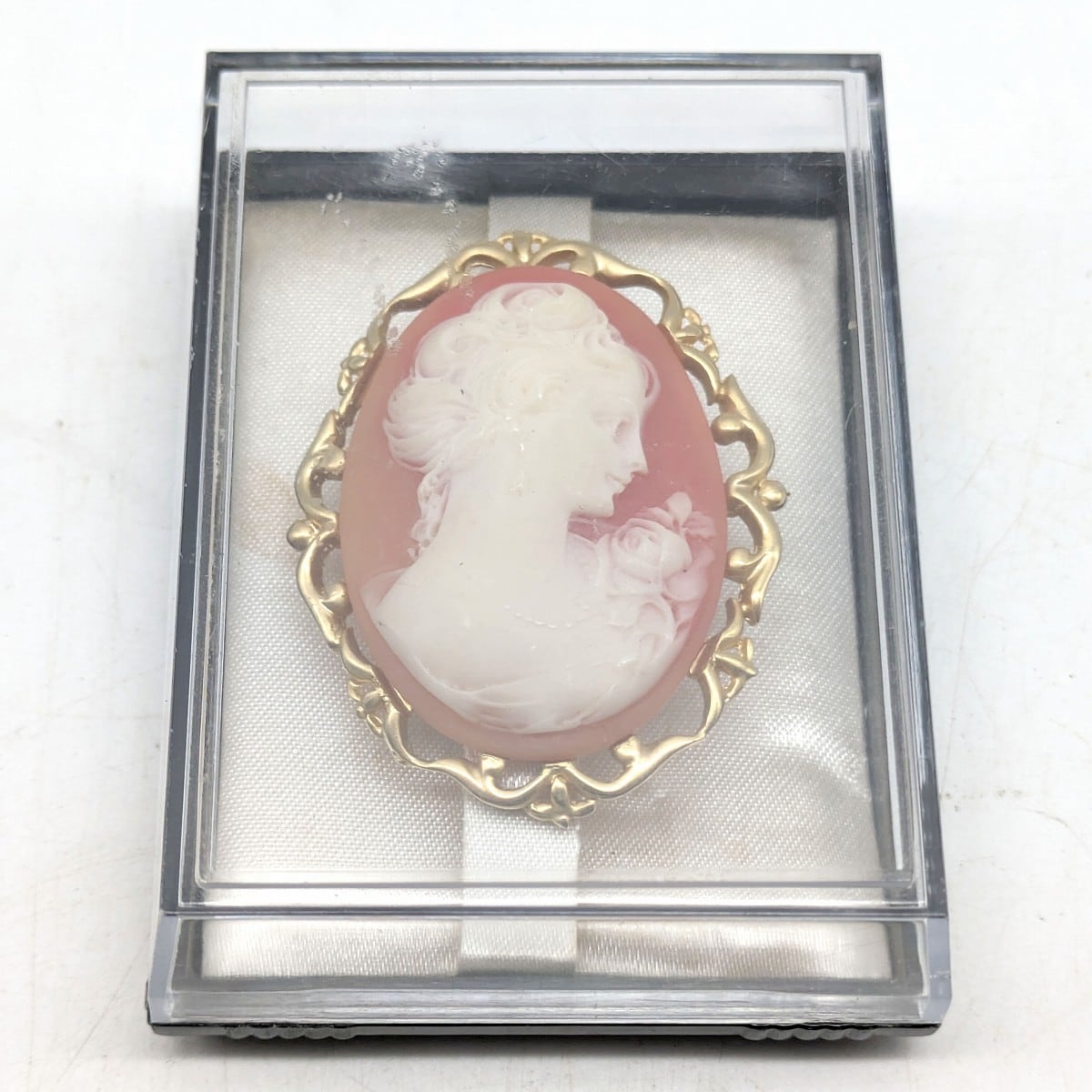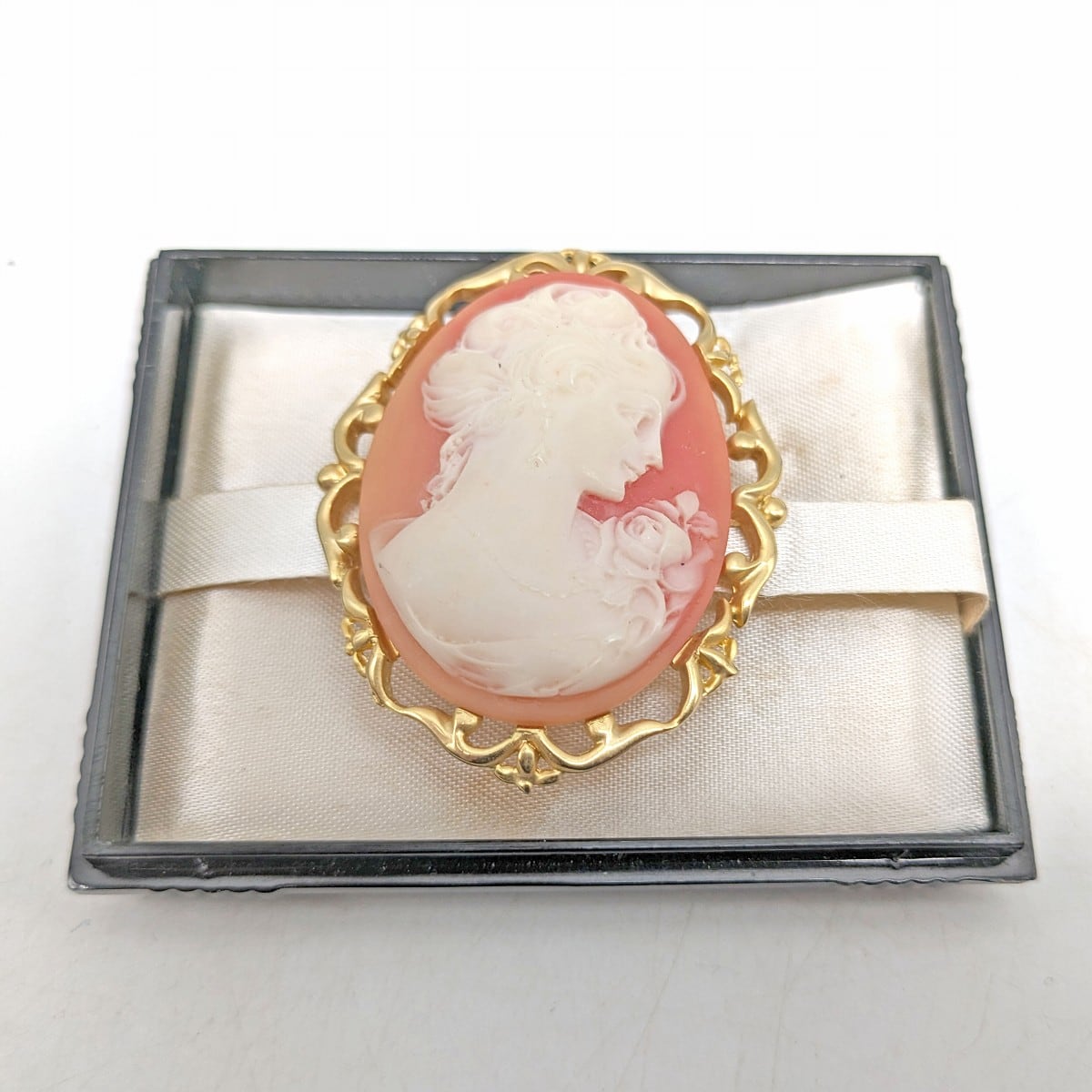 カメオブローチ(幅:約37㎜、奥行:約47㎜、厚さ:約15㎜)、状態ランク:D 商品は画像に写っているものが全てです。本体、箱ともにキズやヨゴレが見受けられます。その他状態は画像をご確認ください。