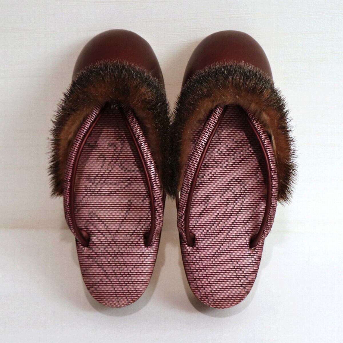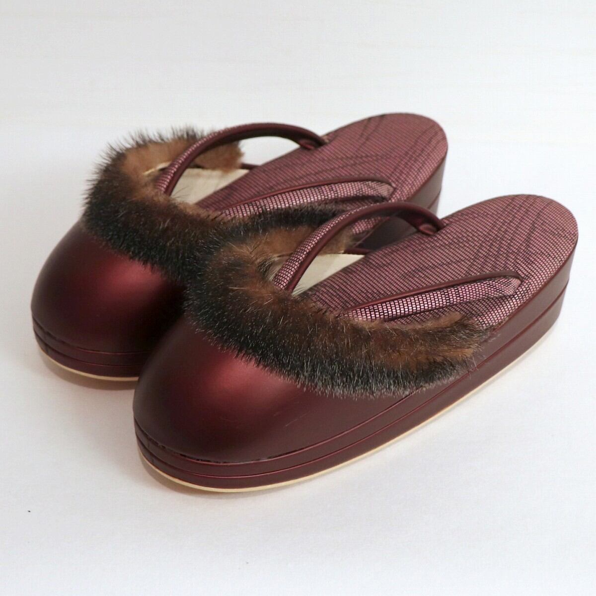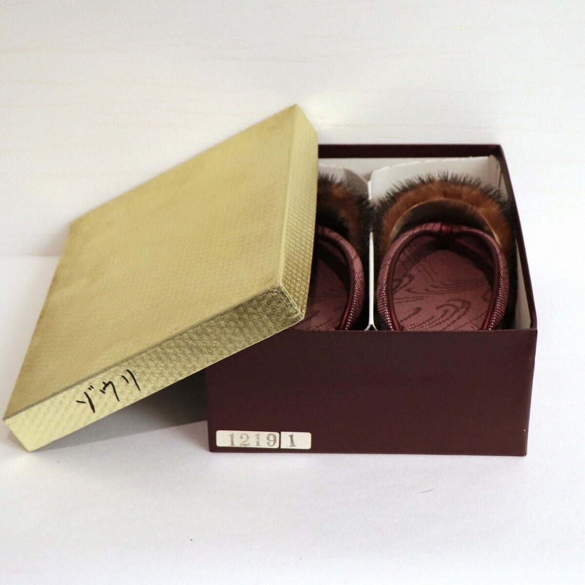 女性用防寒草履(幅:約240㎜×80㎜、鼻緒抜き高さ:約63㎜)、状態ランク:C、全体にキズ、使用感、箱にマジック跡有